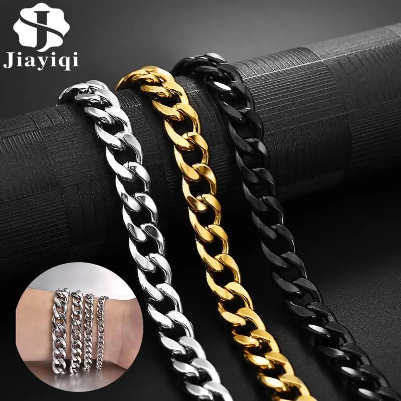 Браслет Jiayiqi из нержавеющей стали для мужчин и женщин, украшение на запястье из кубинской панцирной цепи, 3-11 мм, модный в стиле хип-хоп, Подарочная бижутерия