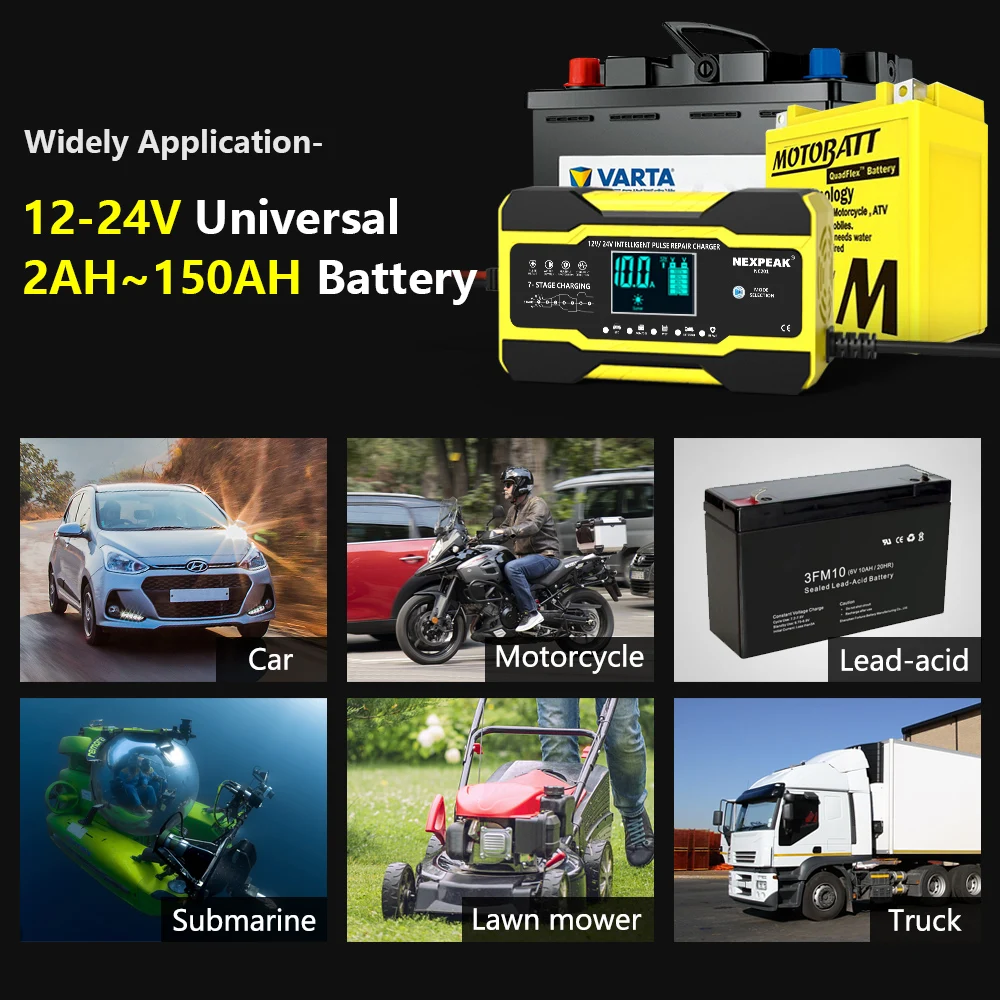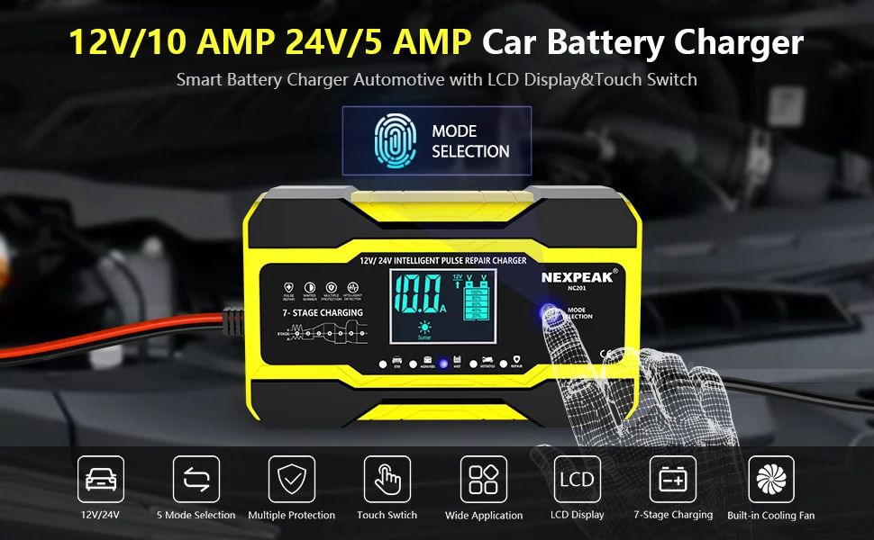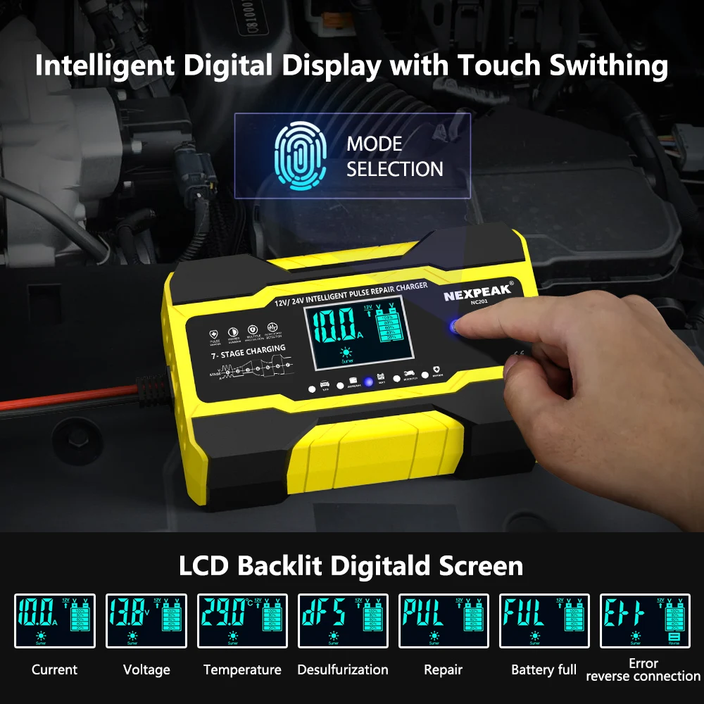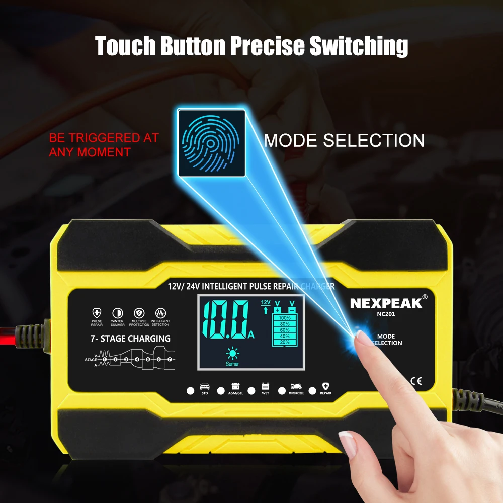 Автоматические зарядные устройства с цифровым ЖК-дисплеем, 12-24 В, 10 А