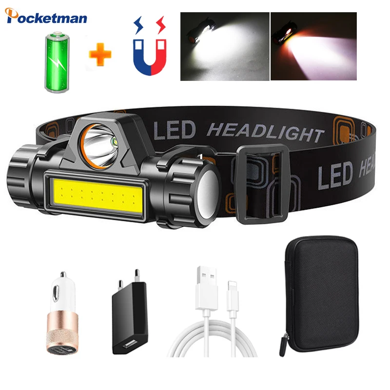 Яркий миниатюрный налобный фонарь с COB светодиодами, мощный налобный фонарь со встроенным аккумулятором 18650, уличный светильник для кемпинга, рыбалки, фара с плавным затемнением