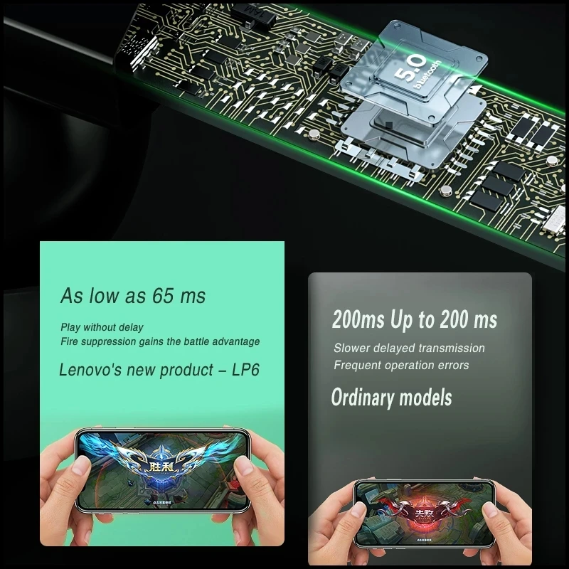 Беспроводные наушники Lenovo LP6 TWS, игровые наушники Bluetooth V5.0, игровая Спортивная гарнитура с низкой задержкой и микрофоном, наушники Lenovo XT92