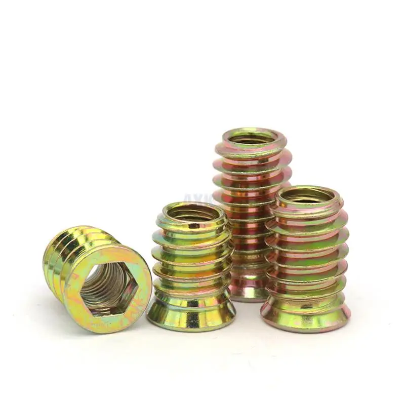 10 шт. M6 M8 M10 стальная металлическая Шестигранная головка с шестигранной головкой, встроенная вставная гайка, E-гайка для деревянной мебели, внутренняя и внешняя резьба