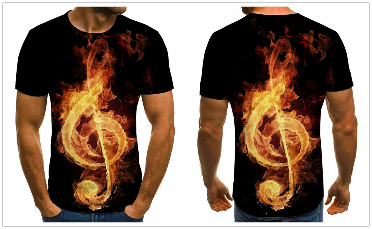 Модная мужская футболка с 3D-принтом музыкальных символов, повседне...