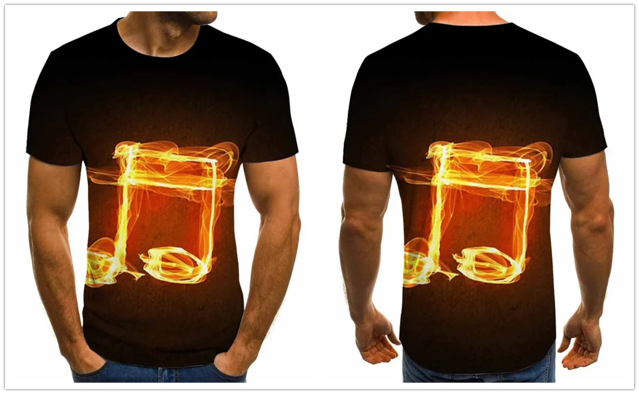 Футболка Летняя мужская одежда Топ с принтом музыкальных нот Новинк...