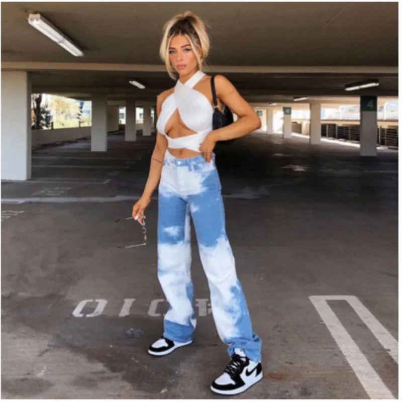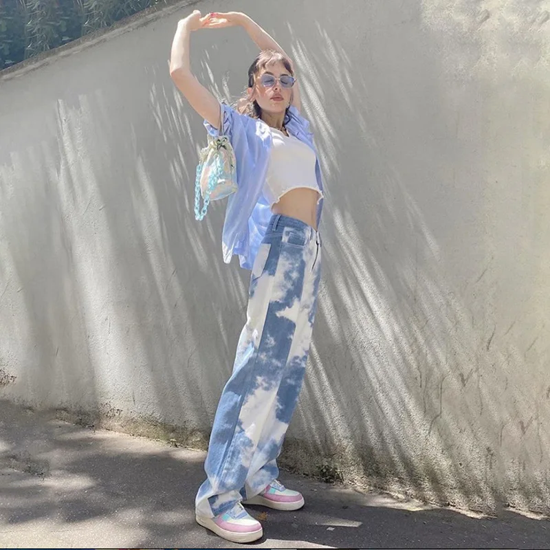 Женские джинсы Y2k в стиле хип-хоп, модные уличные прямые свободные джинсы Tiedye Tr, новинка 2022, повседневные праздвечерние чные широкие брюки в стиле ретро с высокой талией