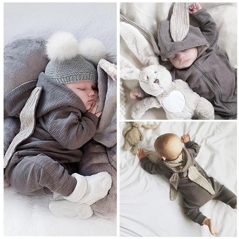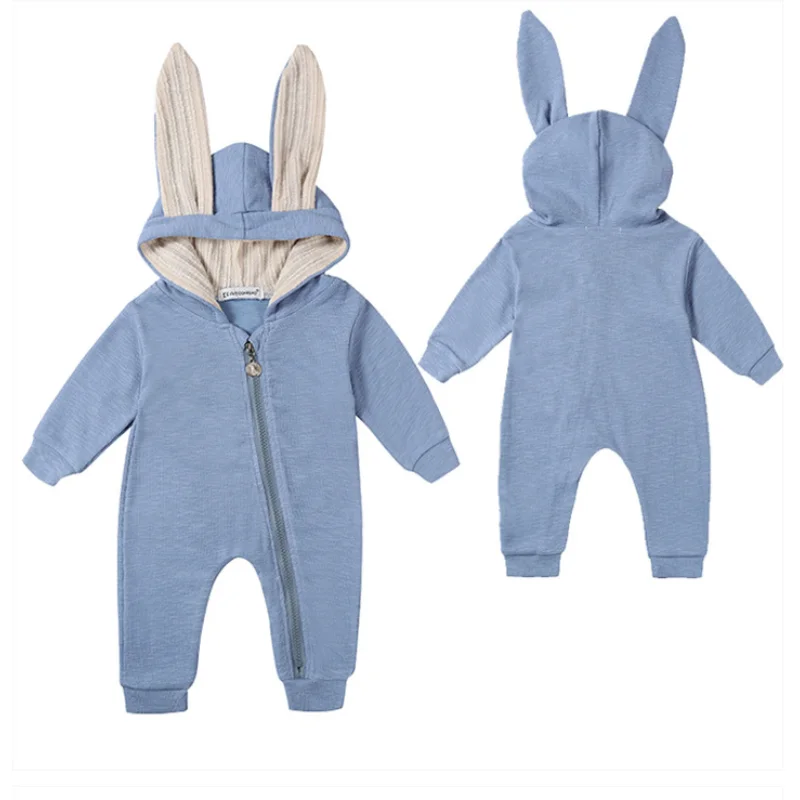 Цельнокроеный Детский комбинезон на молнии с капюшоном и большими ушками