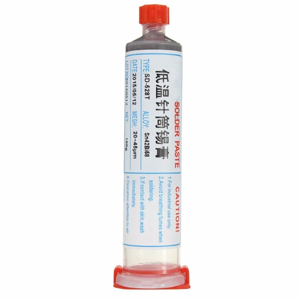 100% оригинал 100 г Sn42Bi58 SD-528T низкотемпературсветодиодный Бессвинцовая паяльная паста температура плавления 138 градусов + иглы