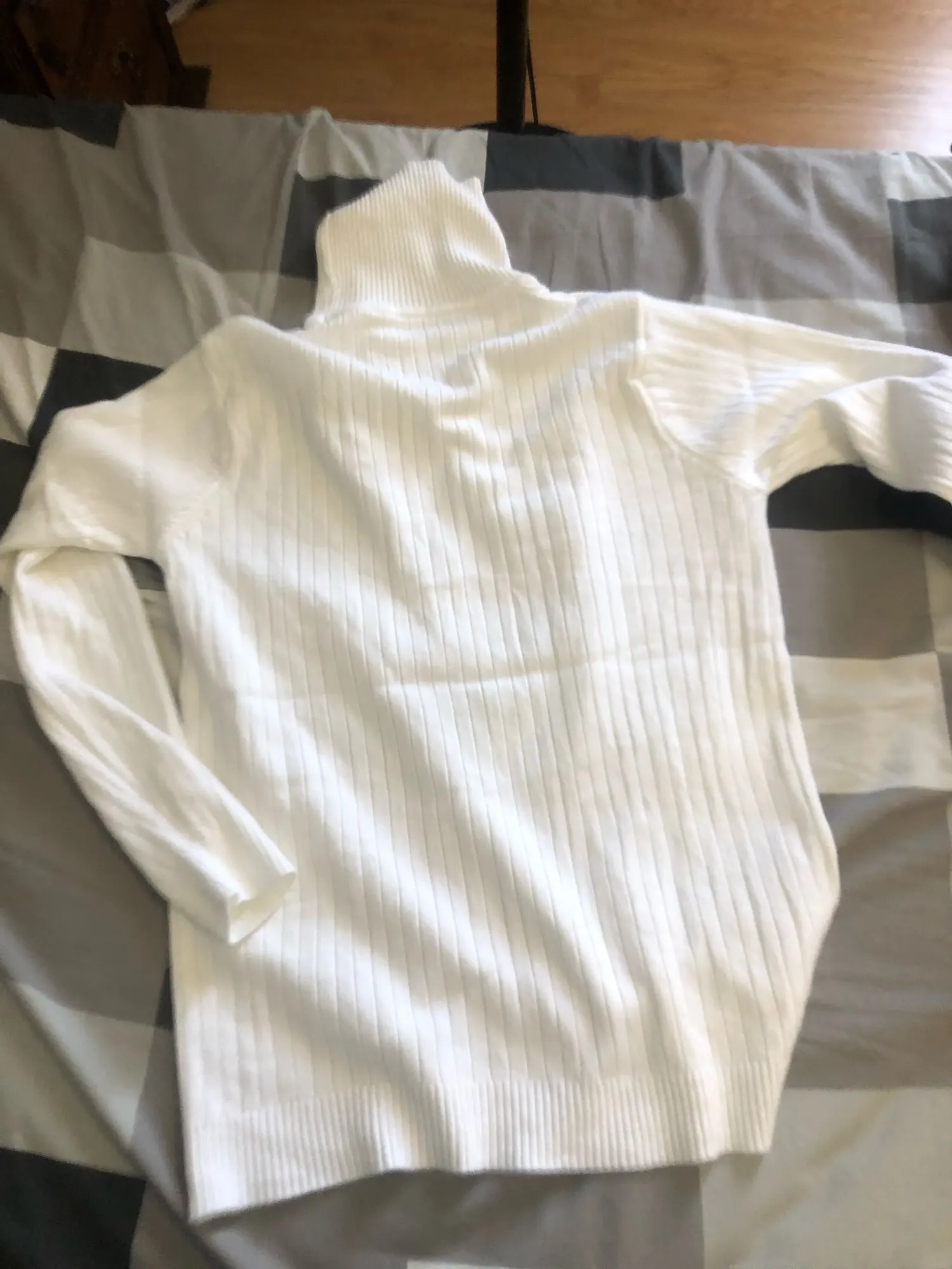 Красивый свитер. Толстый и эластичный материал. Кажется хорошего качества. Доставка занимает 13 дней!