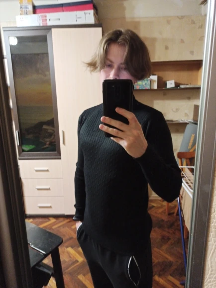 свитер мягкий, приятный, пришёл через две недели, сын рост 180 см плечи 48 , как раз, но можно было бы и подлинее, впритык, лучше брать было 2 XL , спасибо продавцу