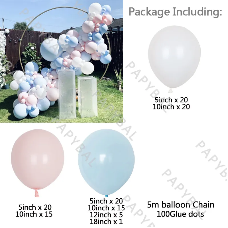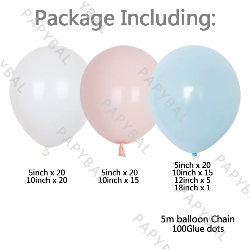 Шары воздушные латексные, голубые, розовые, 118 шт., комплект гирлянды
