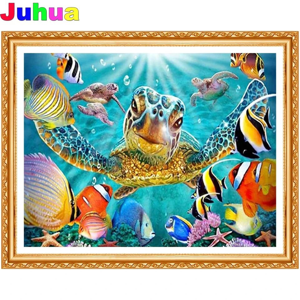 Картина из страз Морская Черепаха 5D сделай сам, вышивка крестиком, мультяшная рыба, вышивка из страз, мозаика, искусство, декор детской комнаты