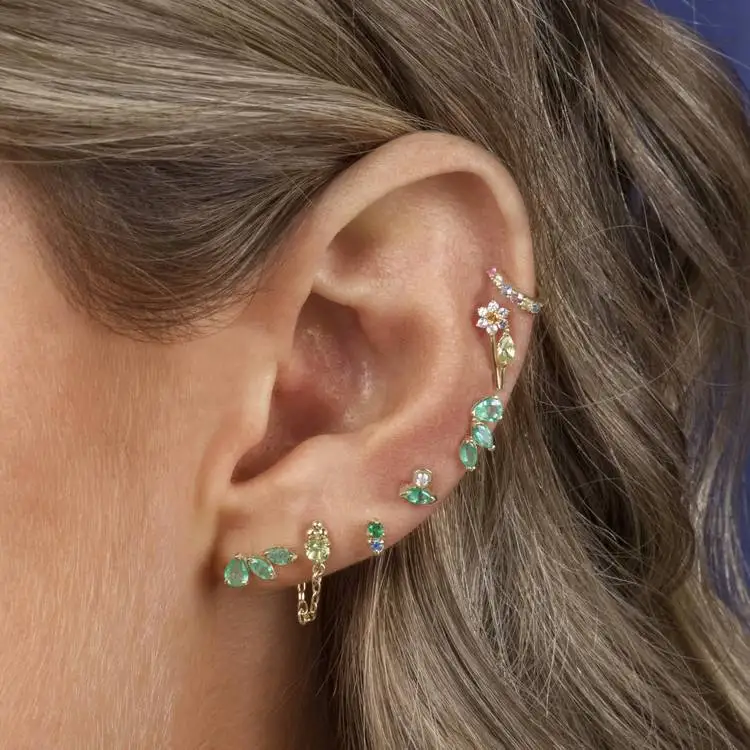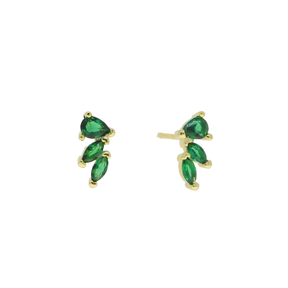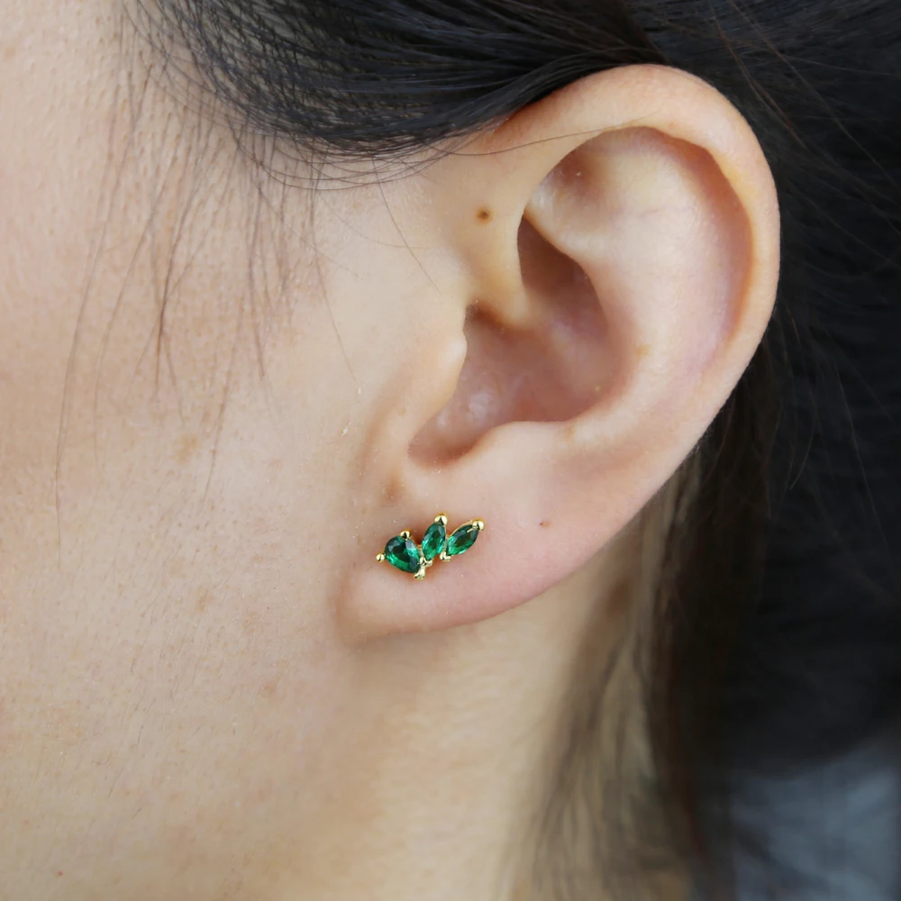 Мульти пирсинг мини маленькие 925 стерлингового серебра женские серьги позолоченные тройной зеленый CZ изогнутые стержни