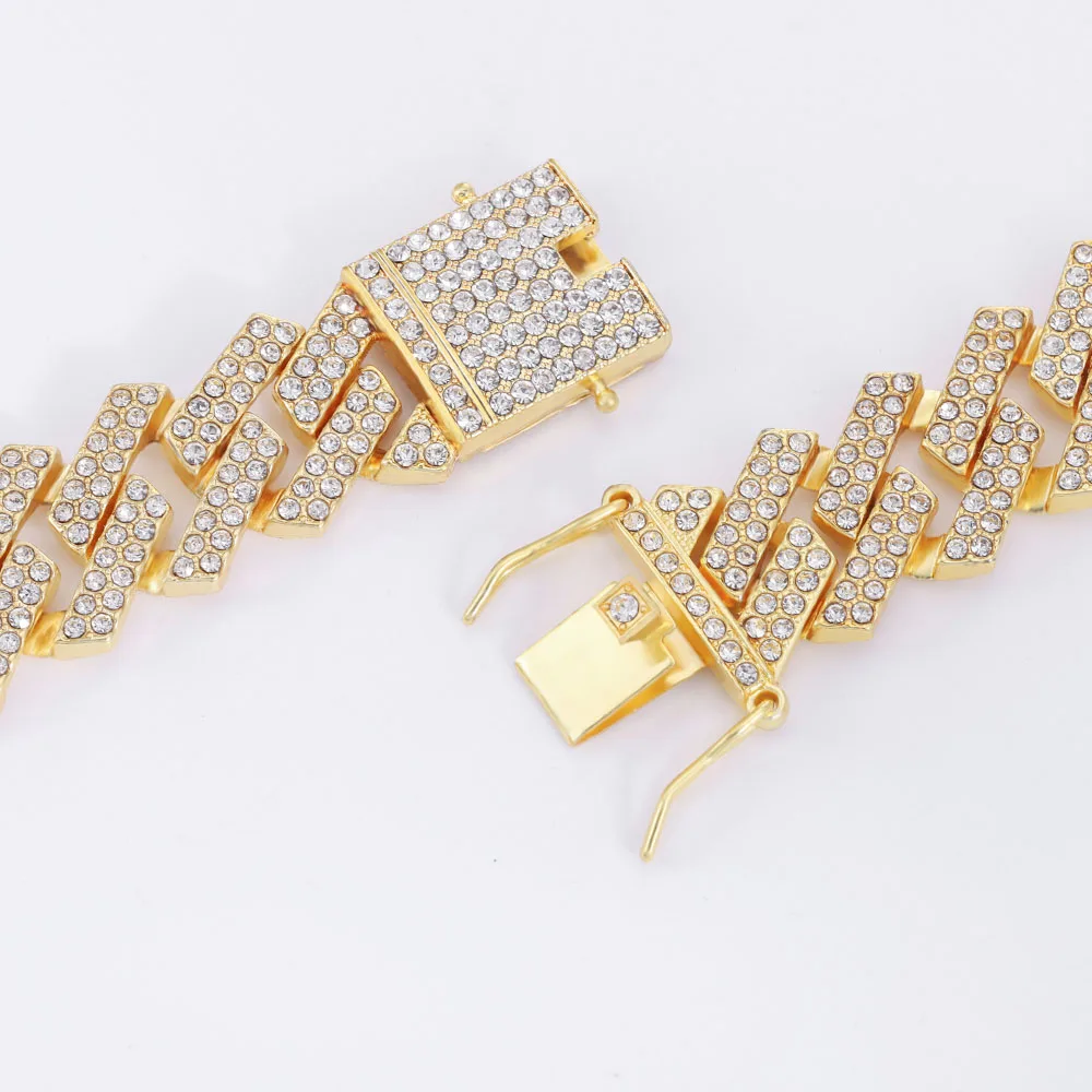 МужскаяЖенская цепочка 20 мм, в стиле хип-хоп, украшенная кубинским камнем, 2 ряда, стразы