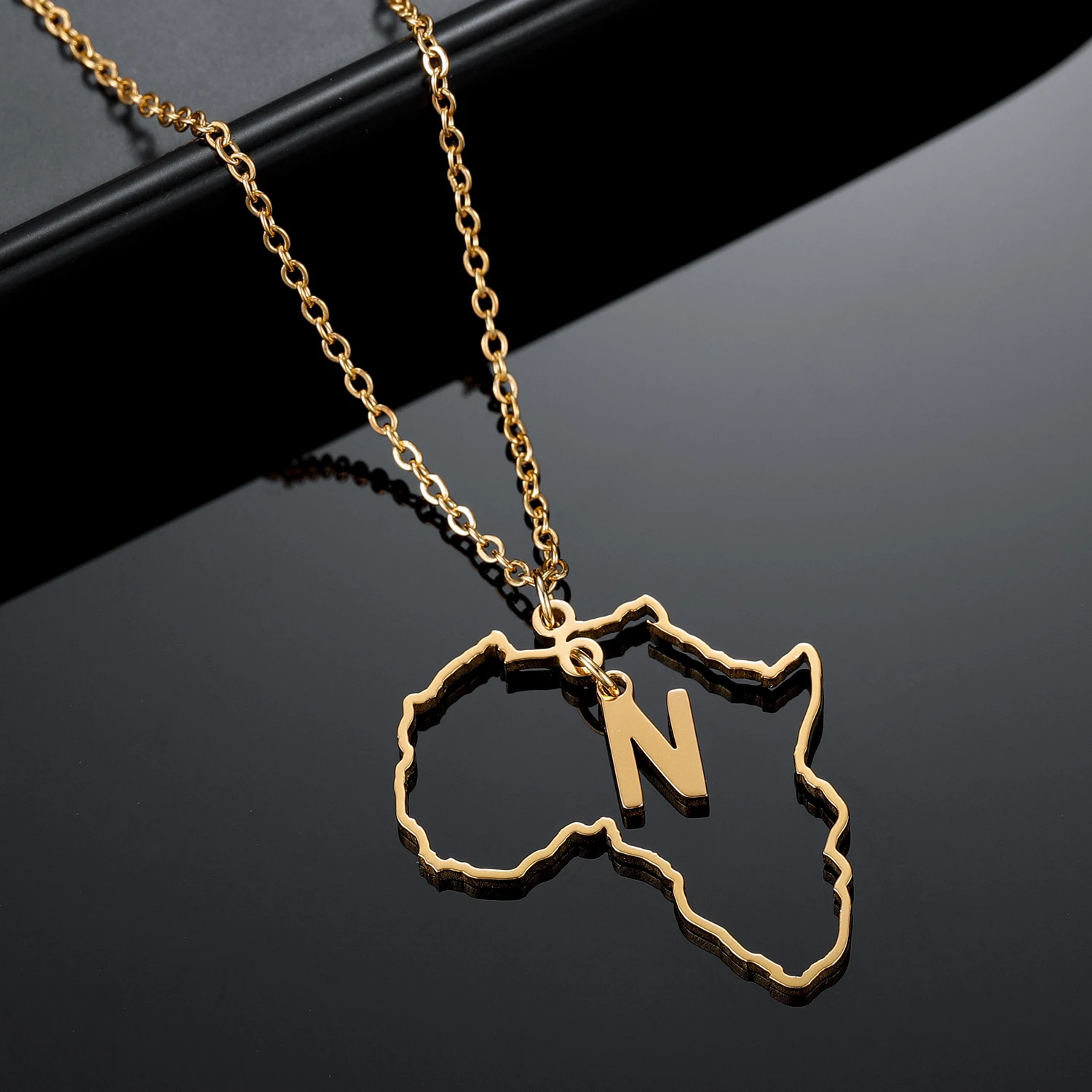 Ожерелье с именем на заказ, инициальная буква, Карта Африки, Золотая полая цепочка из нержавеющей стали для мужчин, чокер, ювелирные изделия в подарок