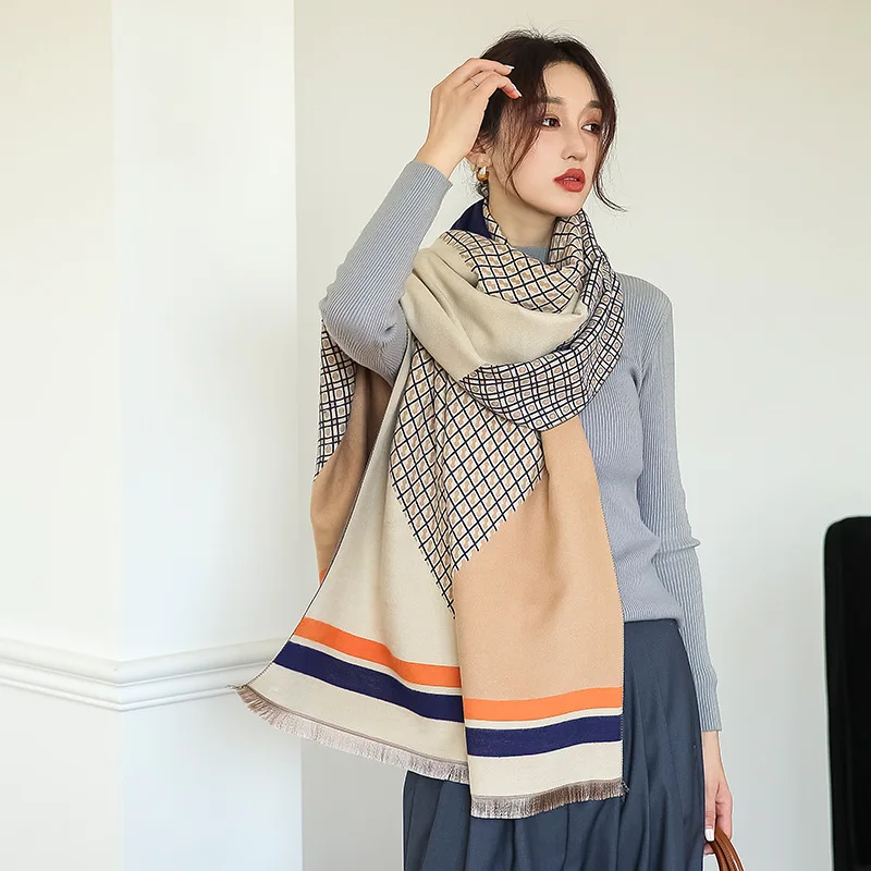 Новинка, Женский кашемировый шарф в литературном стиле, зимнее теплое толстое одеяло, натуральная длинная Двусторонняя шаль из пашмины, стандартный шарф