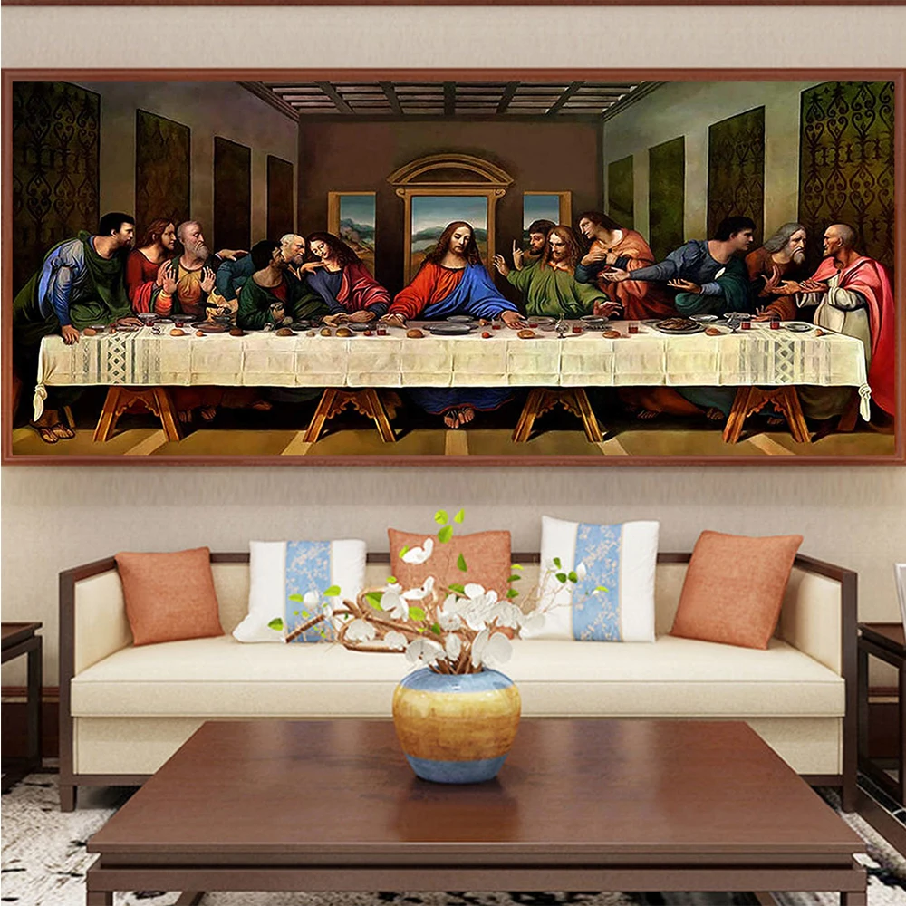 Картина из страз сделай сам с изображением Иисуса на ужине, настенное украшение, двенадцать апостолов, вышивка из страз, Декор, полная фотография