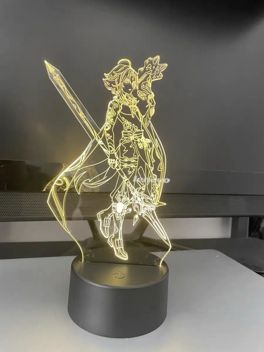 Ударный ночник Genshin, 3D акриловая настольная лампа, прикроватный светильник, ночники в форме аниме персонажа для мальчиков, детей, подарок