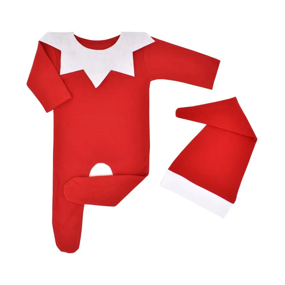 Головной убор и пижамный комплект для новорожденных/Ночная шапка и комбинезон/эльфийский наряд/Рождественский эльфийский наряд