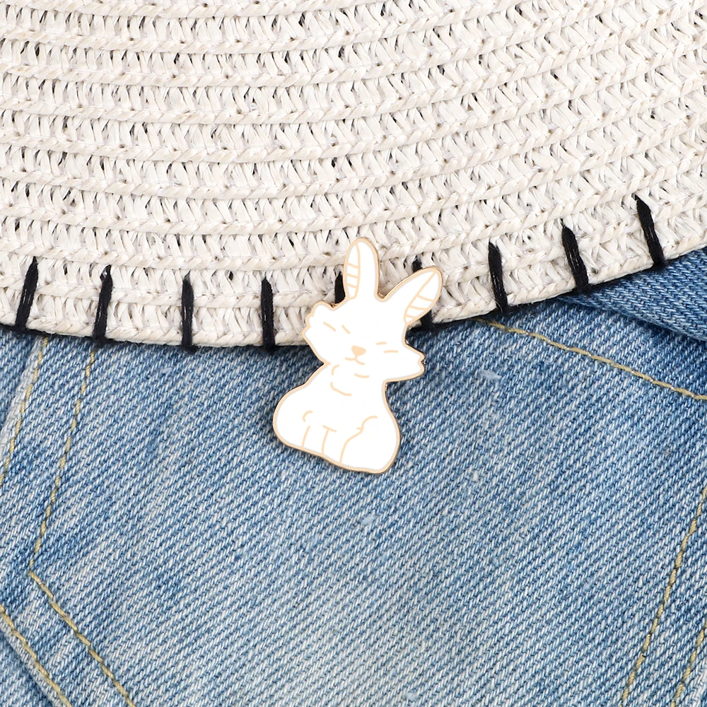 Милые белые Броши «кролик», булавки, эмалированные значки на рюкзак с мультяшными животными, шляпа, джинсовые украшения с отворотами, украшения для женщин, детей, друзей