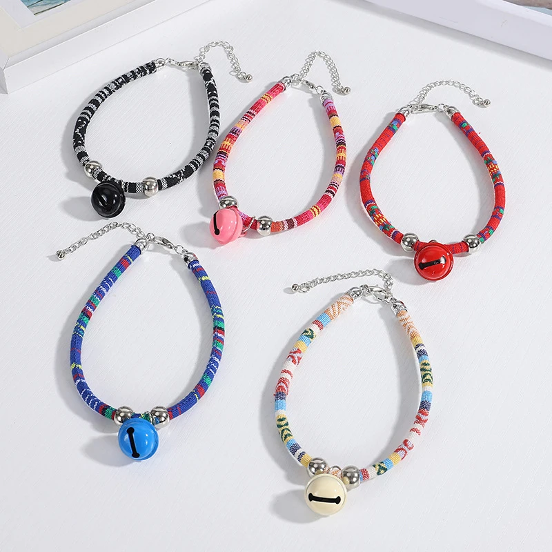 Ошейник в этническом стиле для кошек, эластичная лента в богемном стиле, с колокольчиком для питомца, регулируемый ожерелье с котенком, персонализированные ошейники для собак, товары для домашних животных