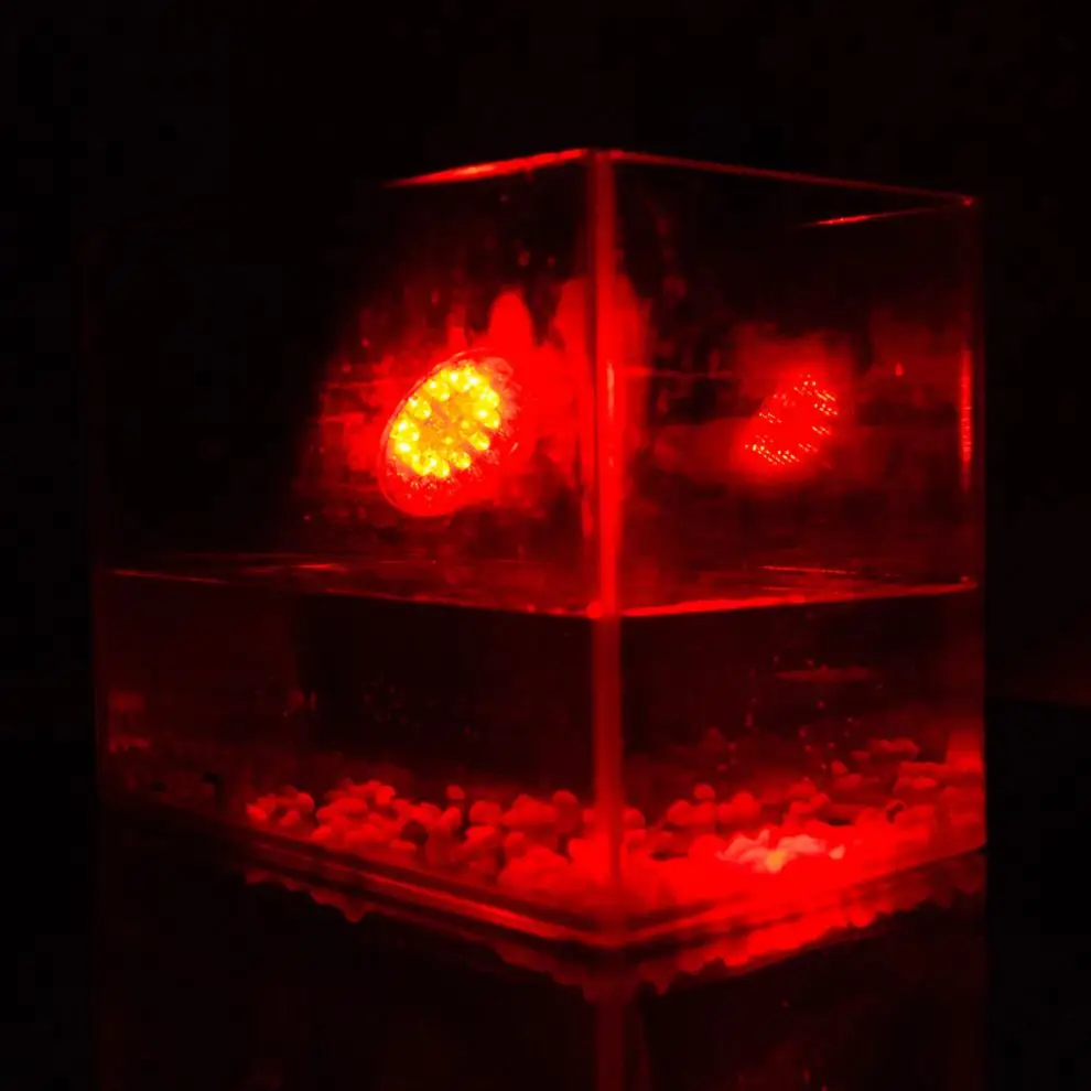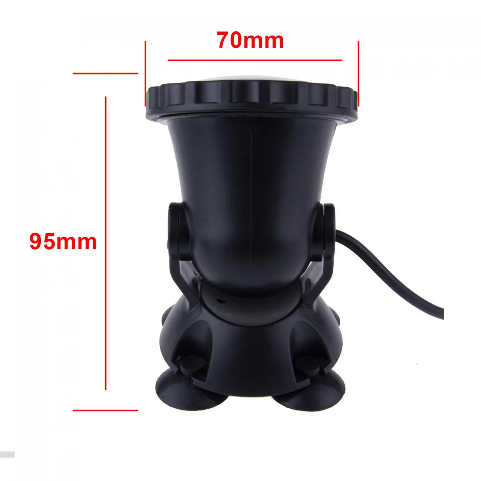 Характеристика:-Погружной светильник для прудов и садов-Подсветка синего, красного и зеленого цвета-36 светодиодный светильник, 7 моделей меняются каждые 1-2 секунды-Четыре присоски на базе-Полностью регулируемый шарнир 180 градусов-Мощность потребление которого составляет около 3,5 W-Низкое тепловыделение-Более 10 часов непрерывного освещения лампы