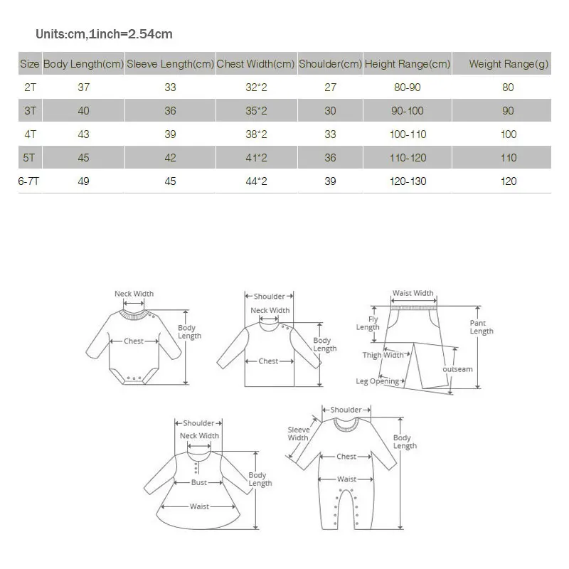 Примечание:Дети одного возраста могут иметь разный вес и рост, пожалуйста, внимательно проверьте таблицу размеров перед покупкой. Полному ребенку следует выбрать больший размер. Если у вас есть какие-либо вопросы, свяжитесь с нами. Спасибо!