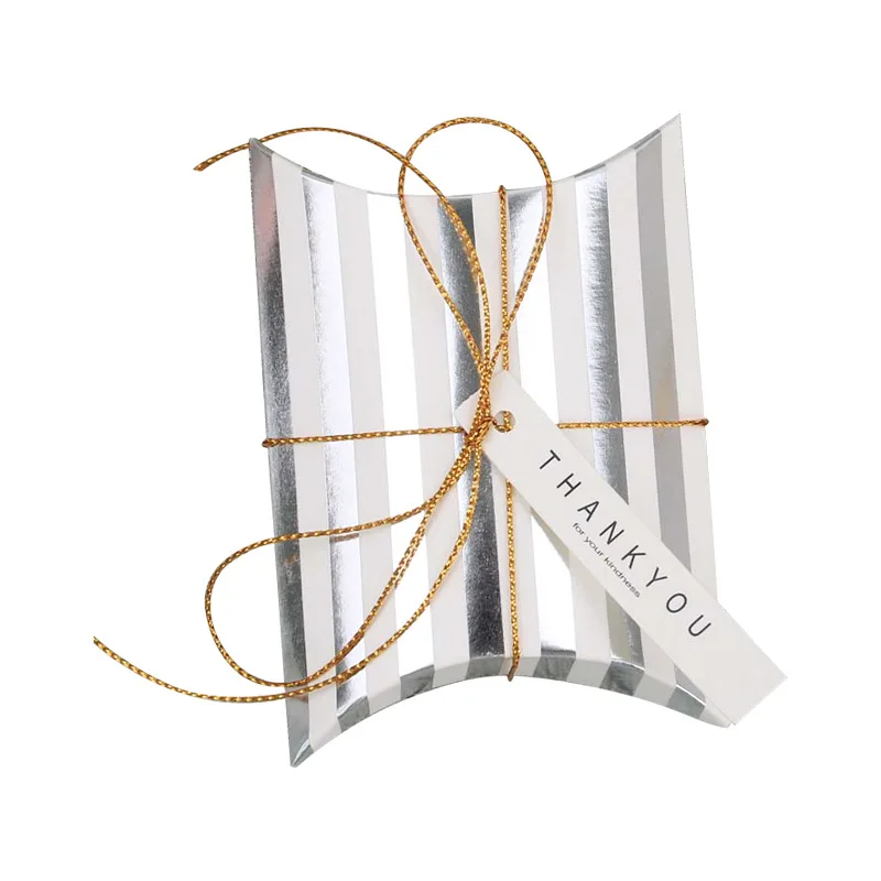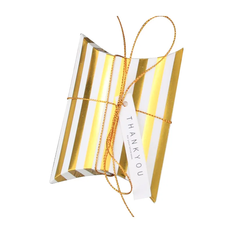 Полосатая Подарочная коробка для конфет, новая бумажная подарочная коробка в форме подушки для свадьбы, бронзовая