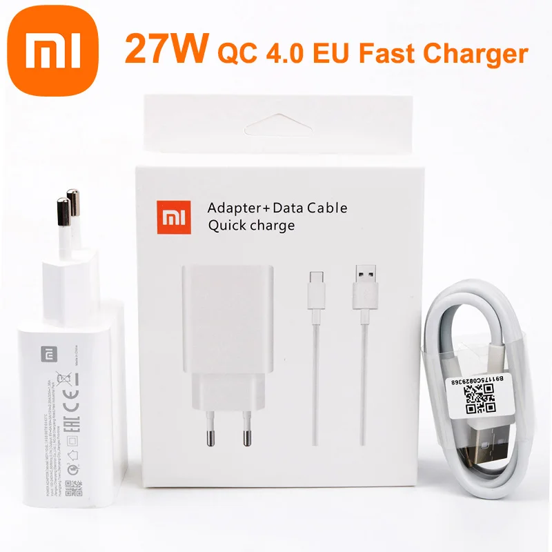 Xiaomi 27W зарядное устройство Оригинал Mi QC 4,0 турбо быстрое зарядное устройство адаптер Тип C кабель для Mi 11 10 Ultra 9 Pro 9T Poco X3 NFC M3 K40 K30Особенности:1. Быстрое зарядное устройство Xiaomi EU US QC4.0 адаптер быстрой зарядкиКабель для быстрой зарядки типа c2. Вход: 100-240VAC В переменного тока, 50/60 Гц, 0.7A3. Выход: 5 В = 3A /9 В = 3A / 12 В = 2.25A / 20 В = 1.35A