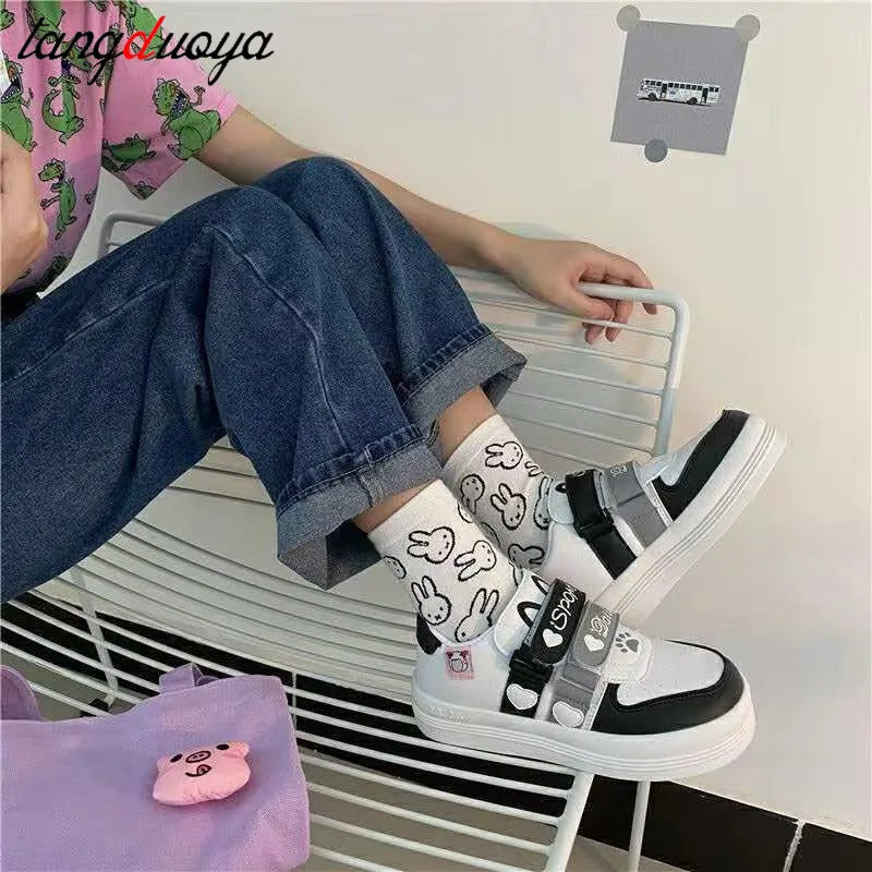 Женские кроссовки на платформе Kawaii, Винтажная обувь с круглым но...