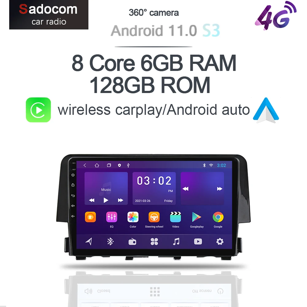 Автомобильный мультимедийный плеер, 6G, 128G, Carplay, 8 ядер, DSP, Android 11,0, для Honda Civic 2015, 2016, 2017, 2018, 2019, GPS-навигация, 4G радио
