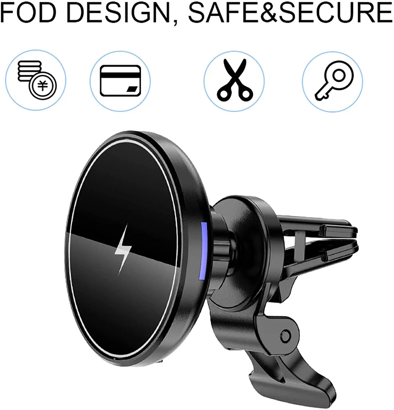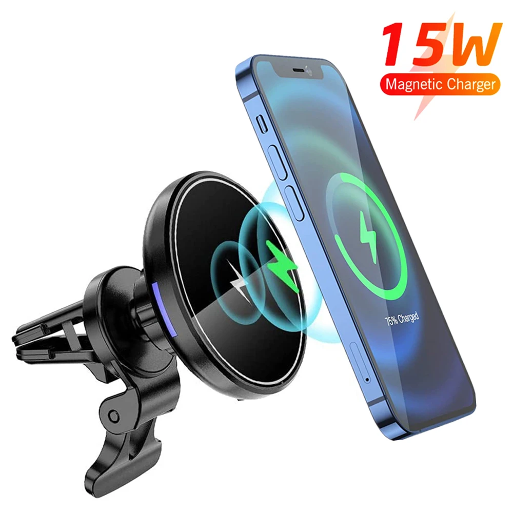 Магнитное беспроводное автомобильное зарядное устройство 15 Вт, подставка для iPhone 12 Pro Max Qi, быстрая зарядка, Magsafing, беспроводное зарядное устройство, автомобильный держатель для телефона