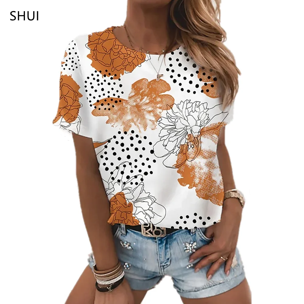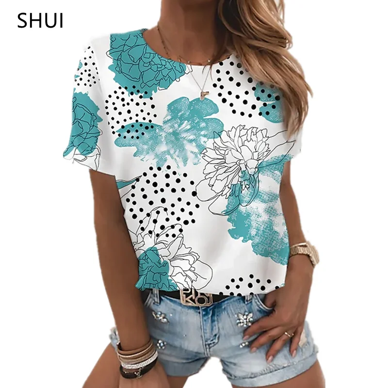 Футболка с 3D цветочным принтом, летняя новая модная повседневная рубашка с круглым вырезом и короткими рукавами, уличная одежда больших размеров, женская футболка 6XL