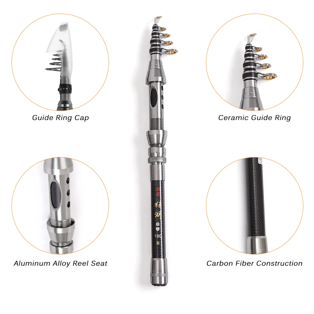Телескопическая удочка и катушка, набор для спиннинга из углеродного волокна, полный комплект для путешествий, рыбалка, спиннинговая катушка