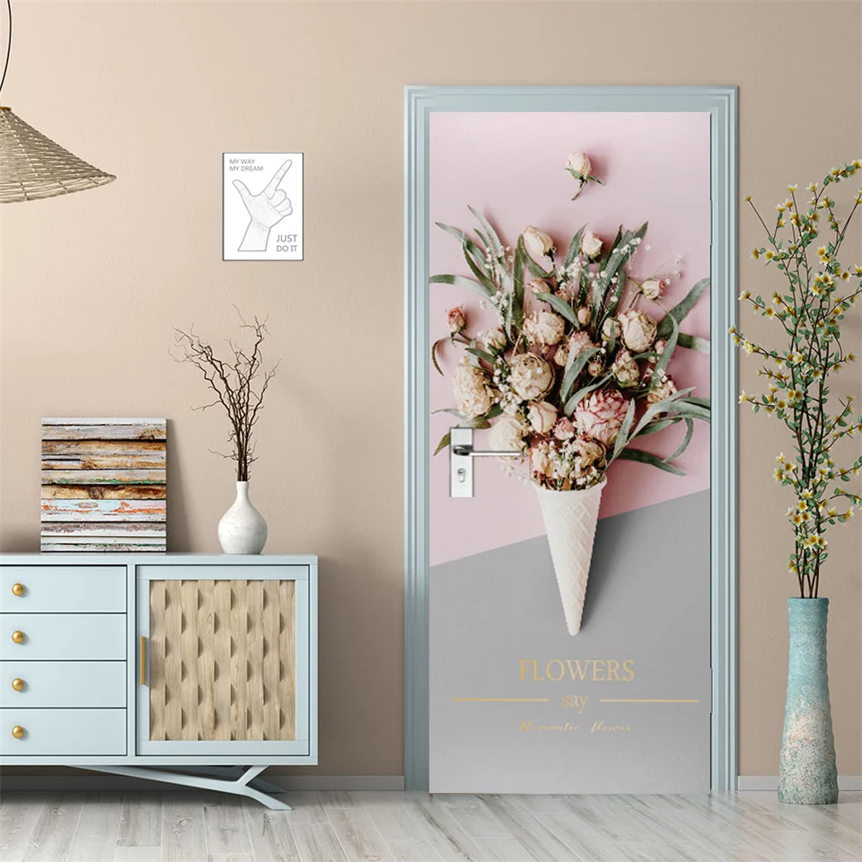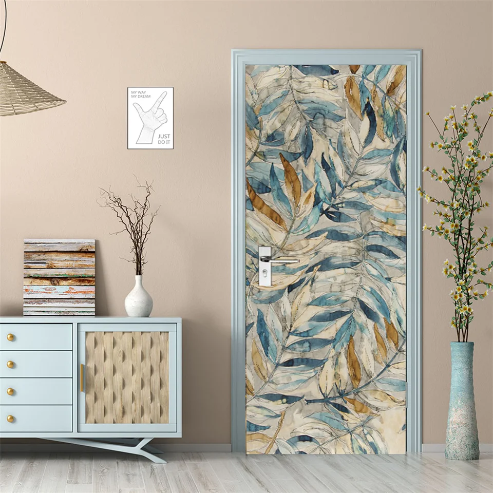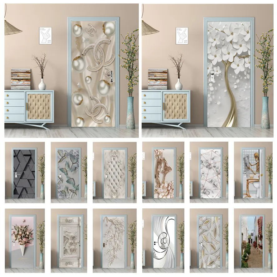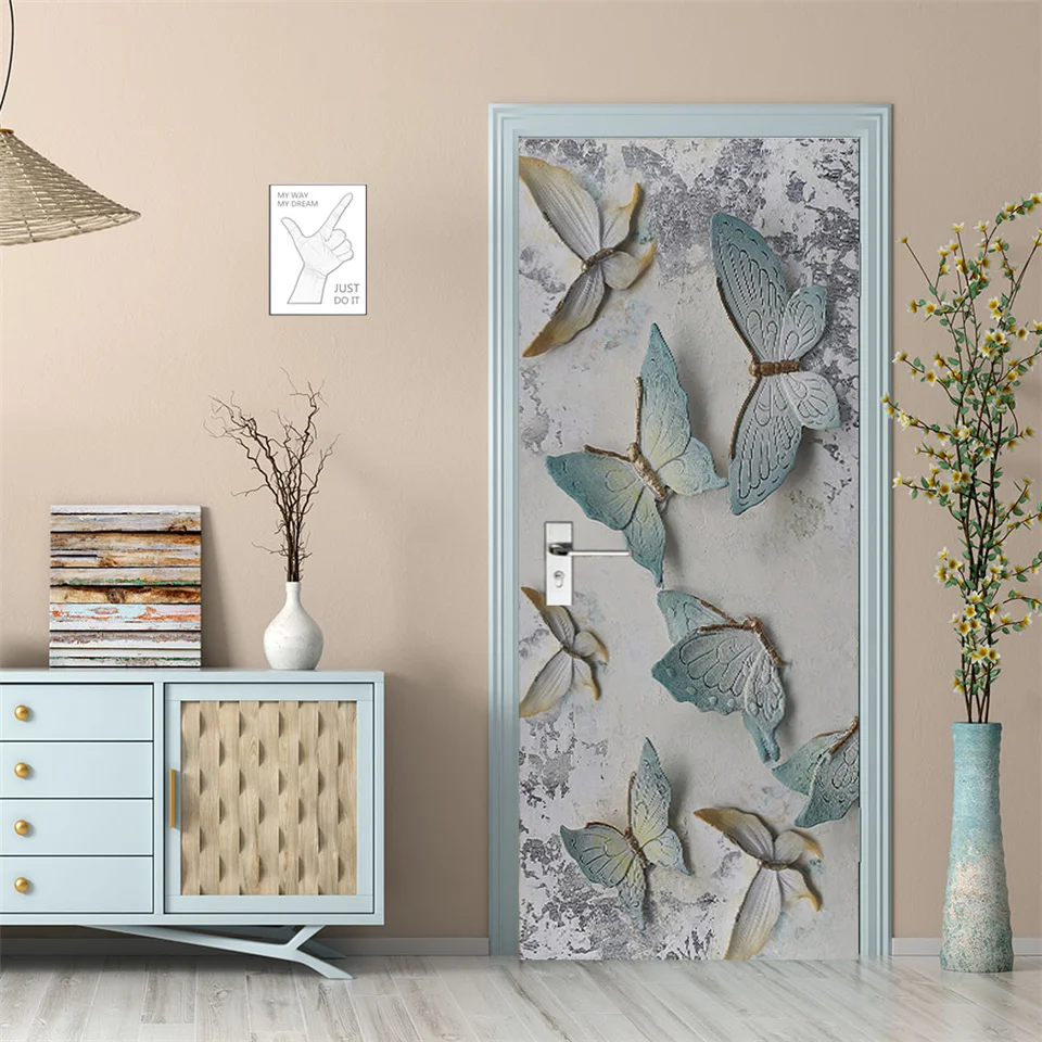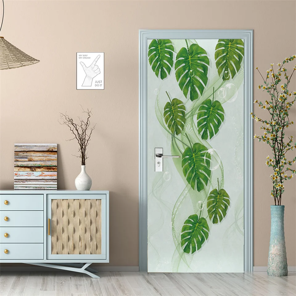 Жемчужные бабочки, 3D обои на дверь, скребок и наклейка, виниловые Зеленые растения, дверные наклейки, индивидуальный сервис, настенные Стикеры, домашний декор