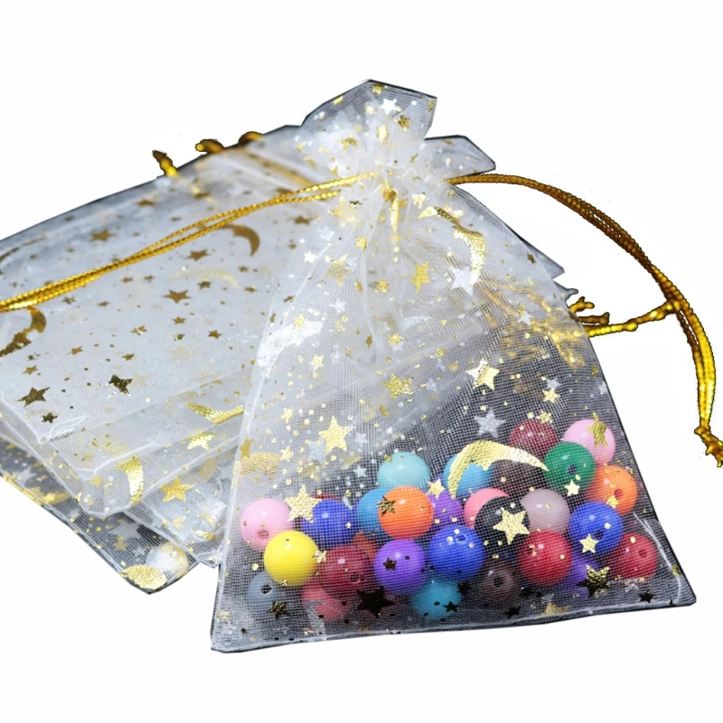 100PCstar и луна шнурок мешок пряжи прозрачная органза тюль элемент...
