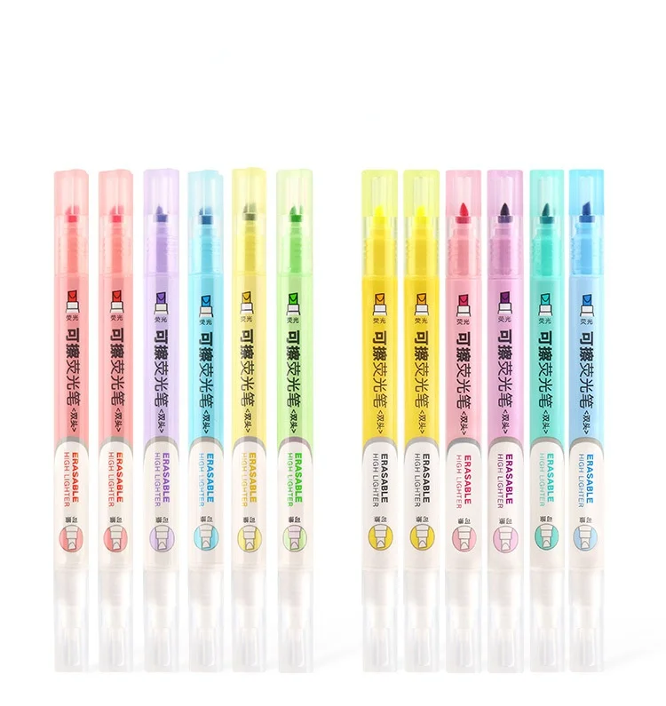 Маркеры флуоресцентные для рисования, маркеры пастельных цветов с двумя наконечниками, 6 стираемых ручек, Канцтовары для школы и офиса