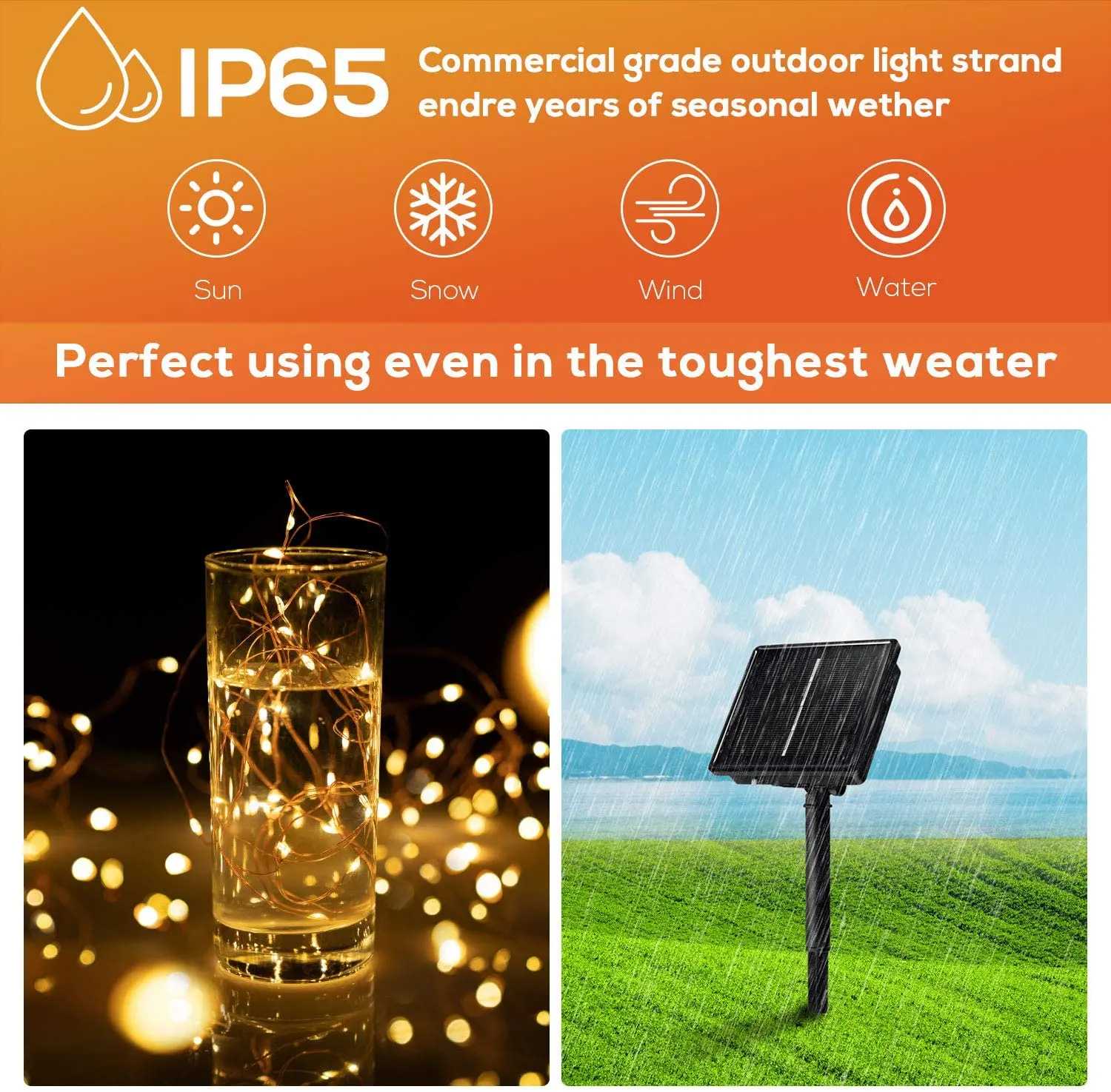 Уличная светодиодная гирлянда на солнечной батарее, медный провод для праздника, Рождества, вечеринки, водонепроницаемая садовая декоративная лента, 5 м, 7 м, 12 м
