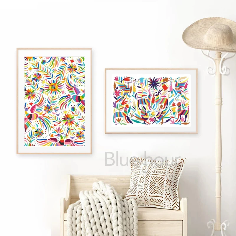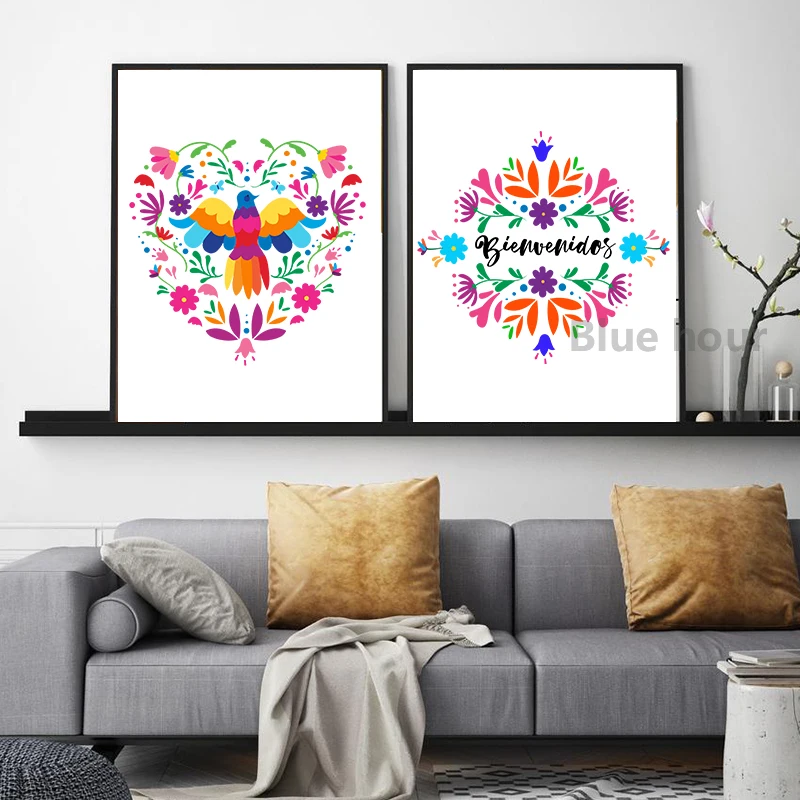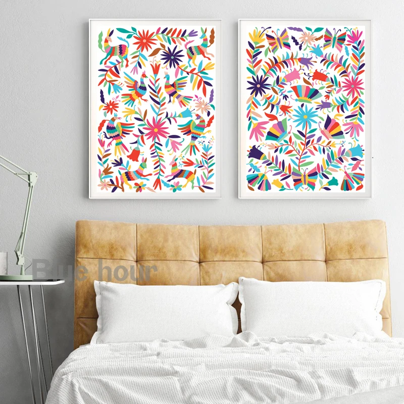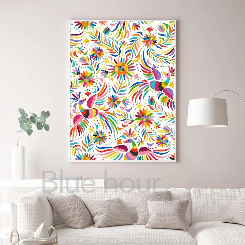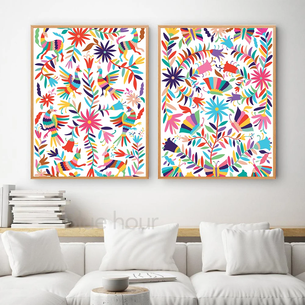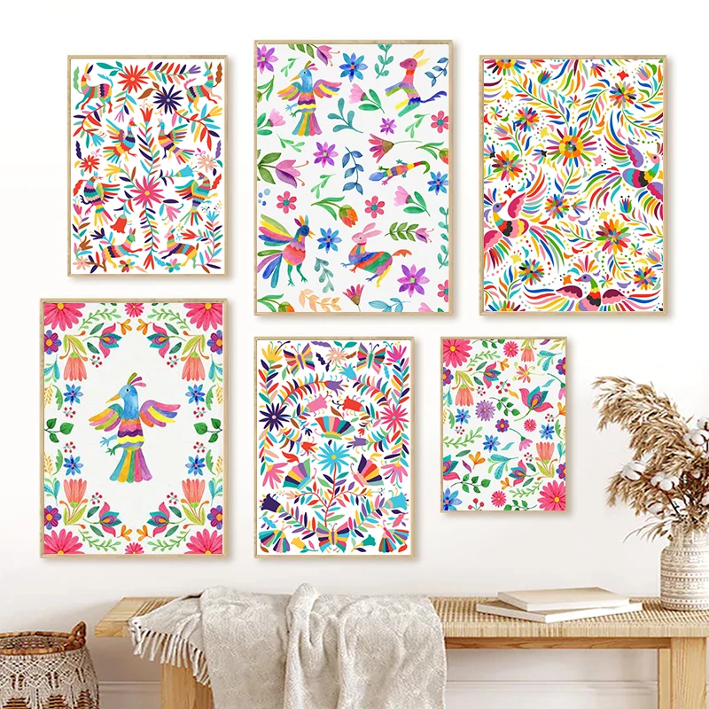 Красочные мексиканские цветы, народное искусство, Классическая Картина на холсте Otomi, мексиканские настенные картины, Декоративные плакаты и принты для гостиной