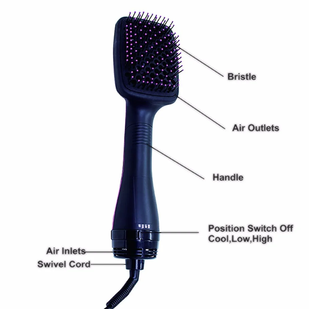 Плавный результат с меньшим количеством вьющихся волокон за половину времени: точность сушилки стайлеромГибкая щетина без спутывания помогает высушить, разгладить и уложить волосы1000 Вт мощности сушки. В отличие от обычных фена, этот стайлер можно быстро высушить и уложить волосыИонная технология: отрицательные ионы насыщают воздушный поток. Это помогает улучшить состояние, разгладить и сделать волосы блестящими, уменьшая при этом вьющиеся и статические2 режима нагрева/скорости для гибкости укладки с классным вариантом.