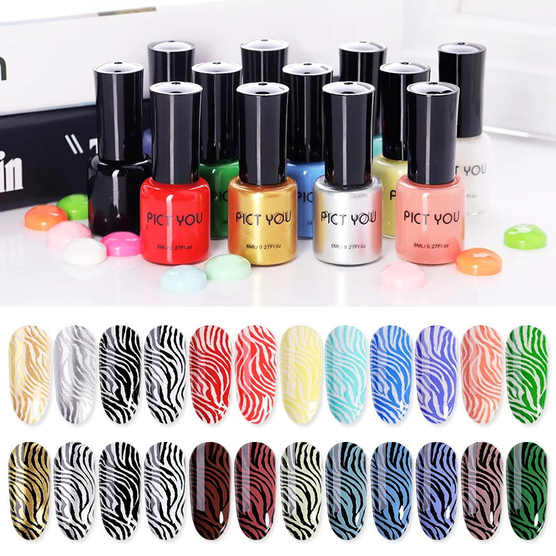 8 мл цветной штамповочный лак для ногтей черный белый красный лак для ногтевого дизайна печать своими руками дизайнерский Лак 12 цветов s нюдовый лак для ногтей