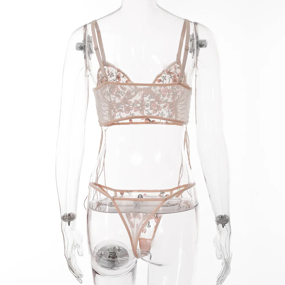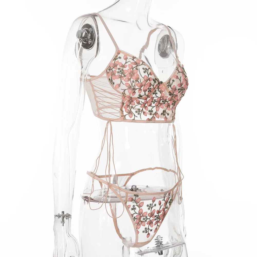 Комплект женского нижнего белья из бюстгальтера и трусов, с вышивкой