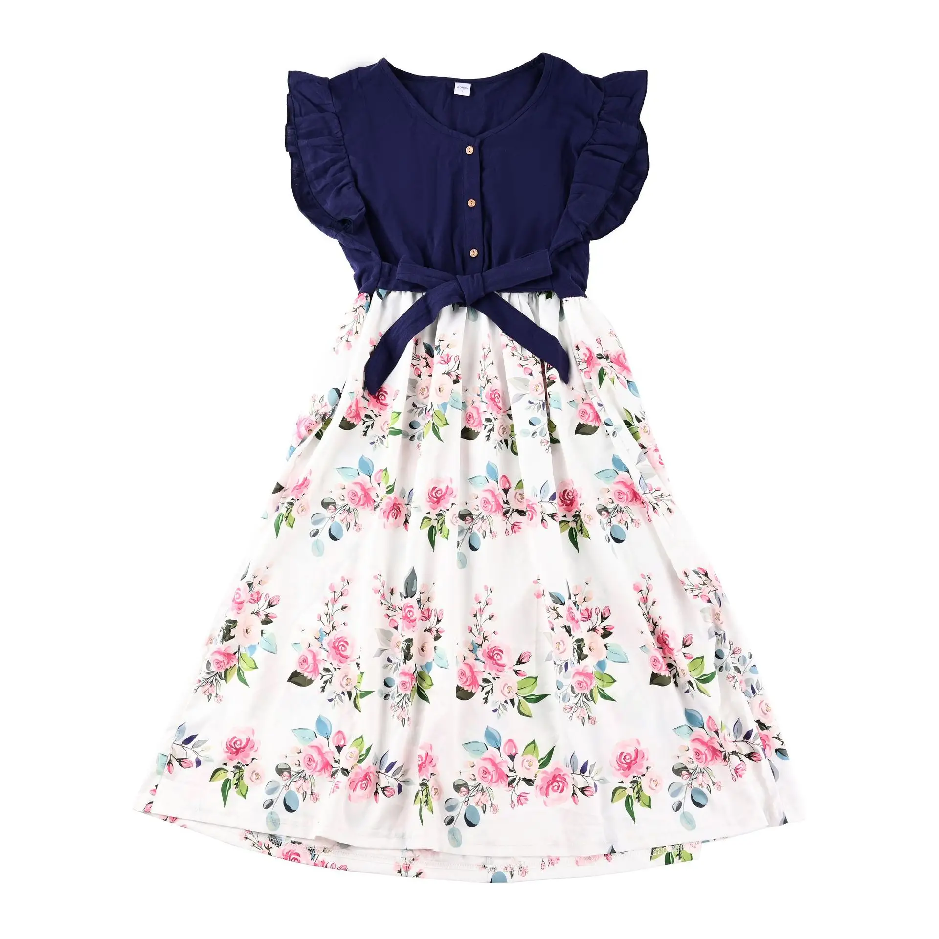 Новая семейная одежда для родителей и детей Джинсовая длинная юбка с принтом Одежда для мамы и дочки летняя тонкая одежда без рукавов, 2 цвета