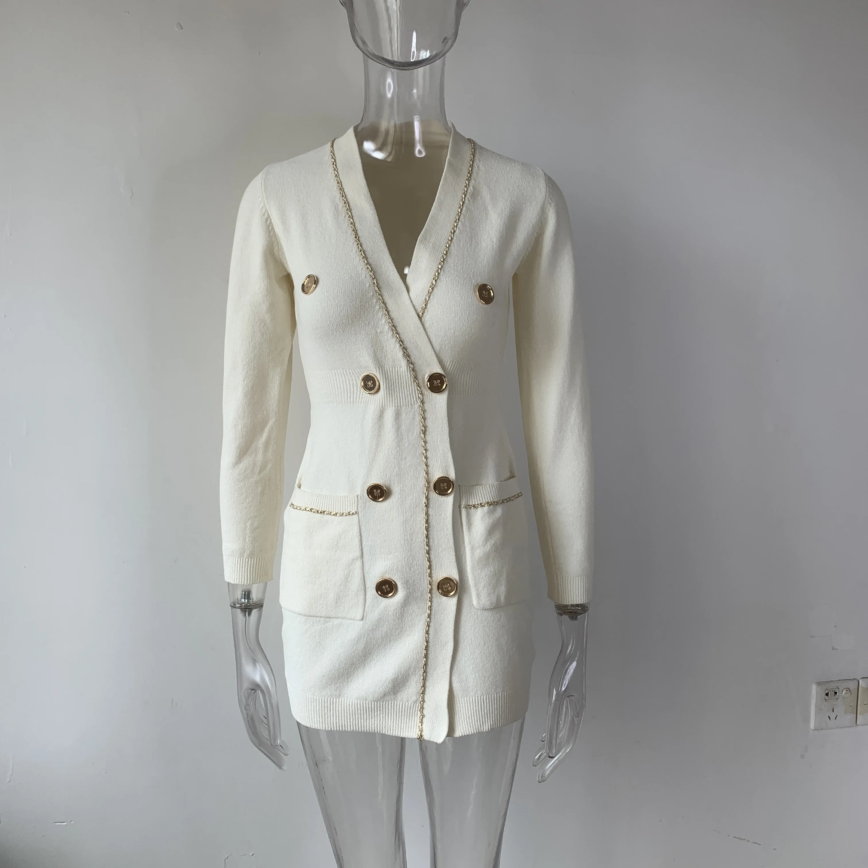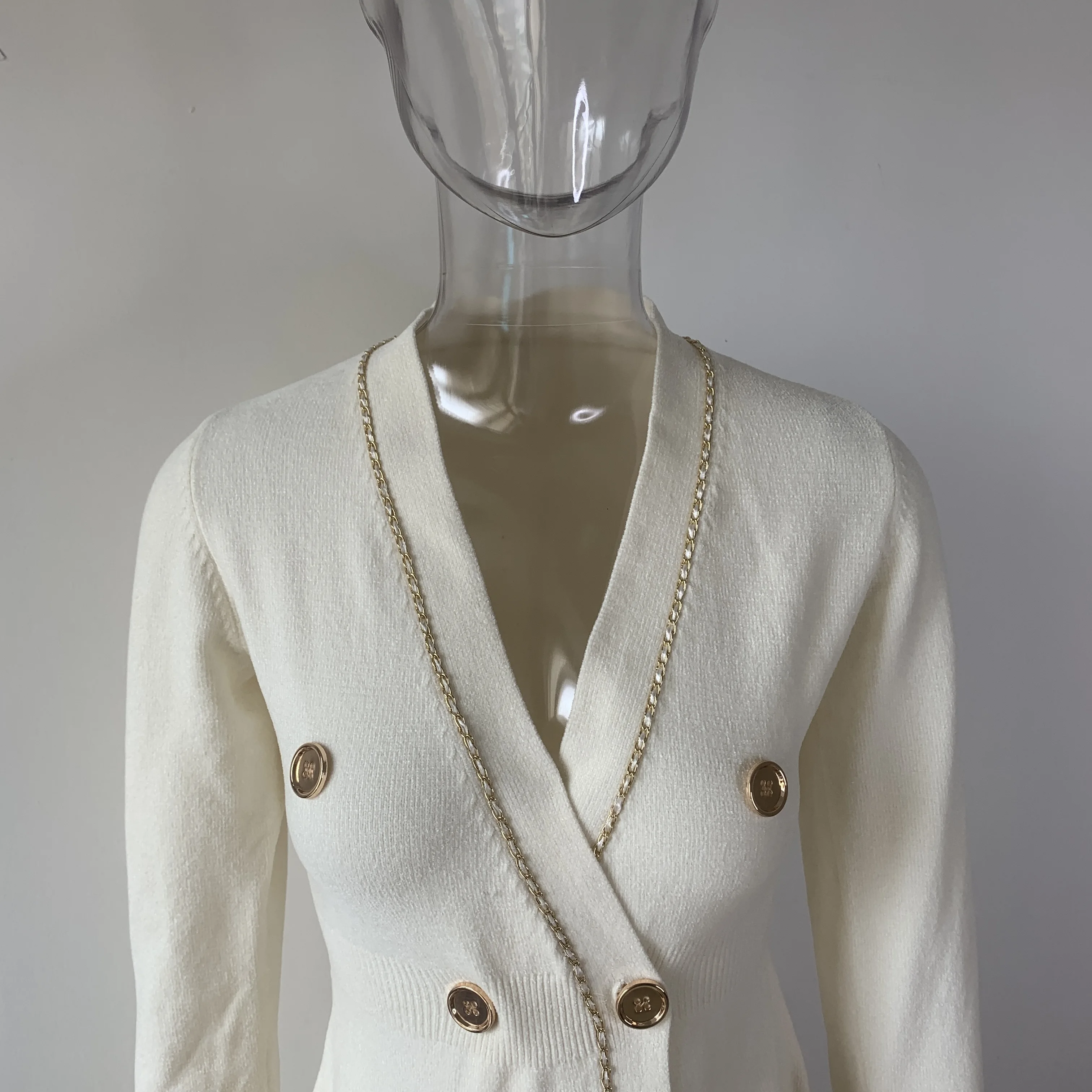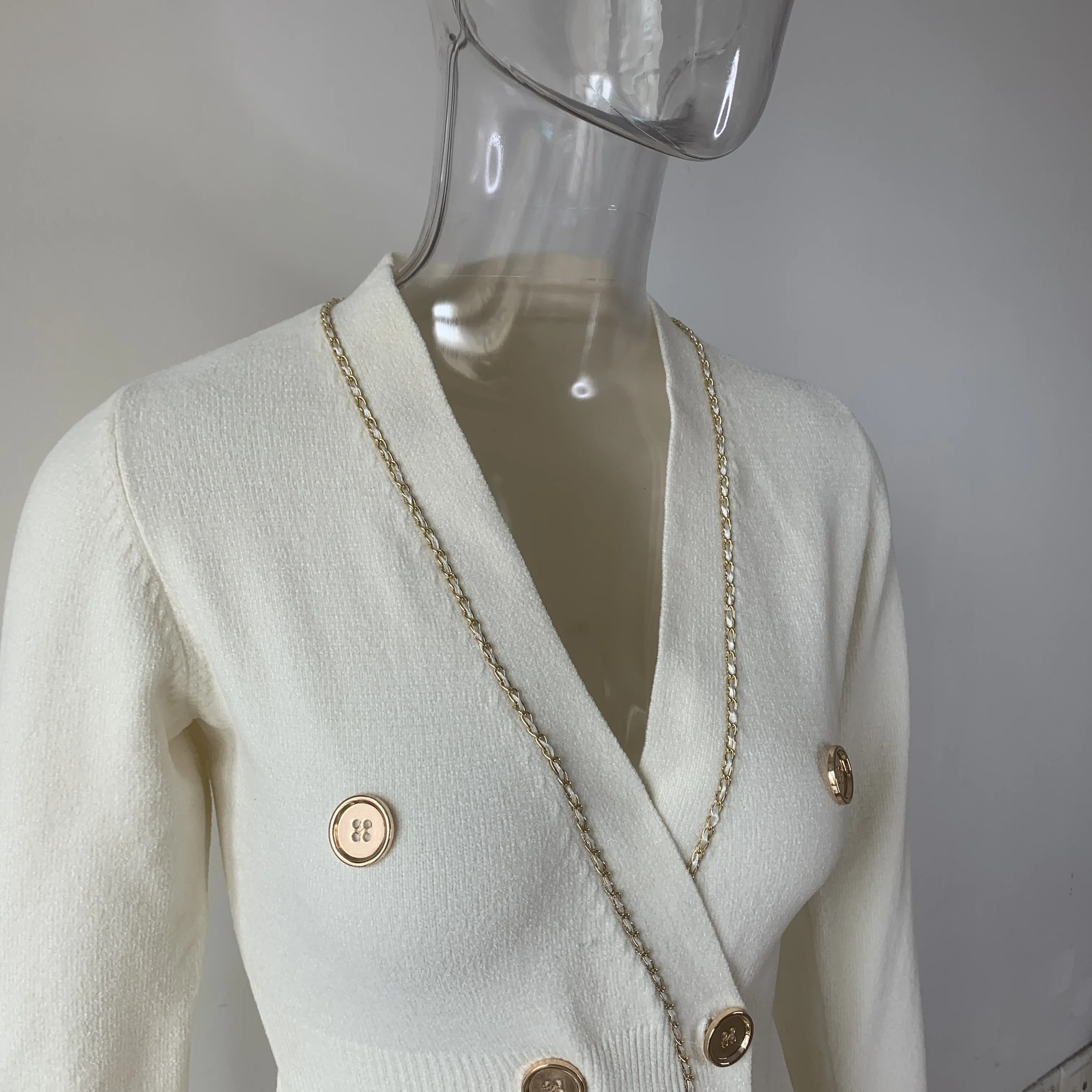 HarleyFashion Осенняя коллекция роскошное итальянское сексуальное платье с v-образным вырезом и длинным рукавом Exqusite с цепочкой в стиле пэчворк бежевое облегающее трикотажное уличное платье