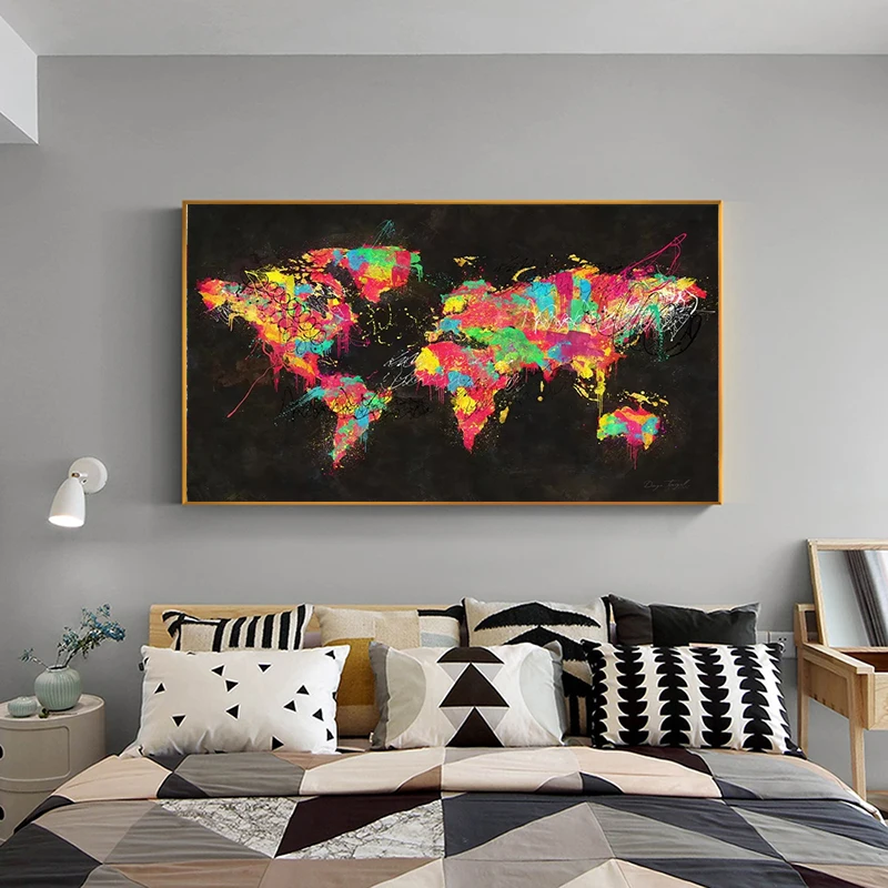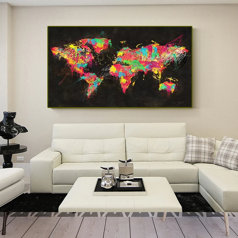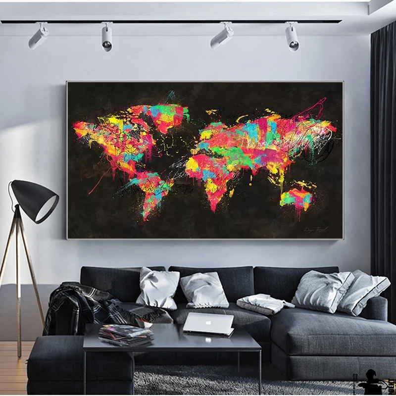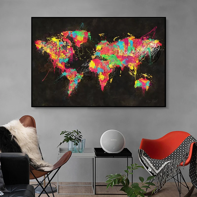 Абстрактный цвет карта мира холст картины Современный принт плакаты...