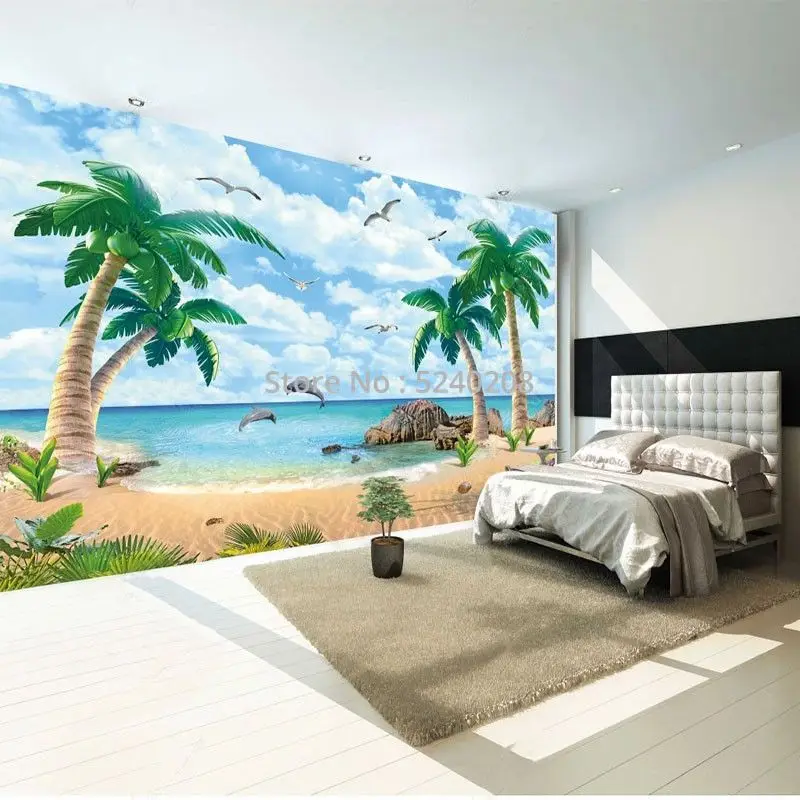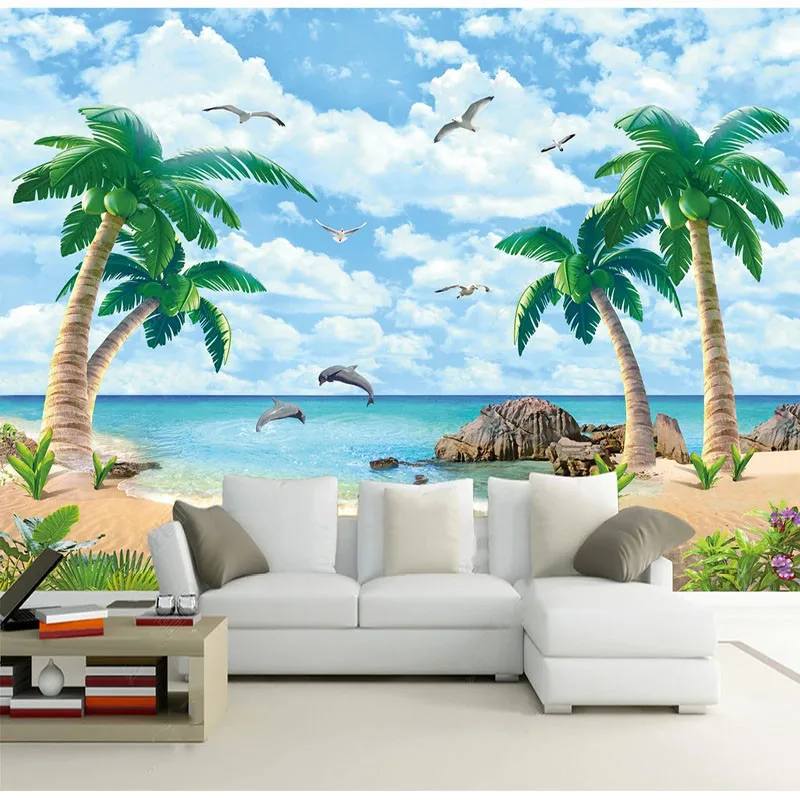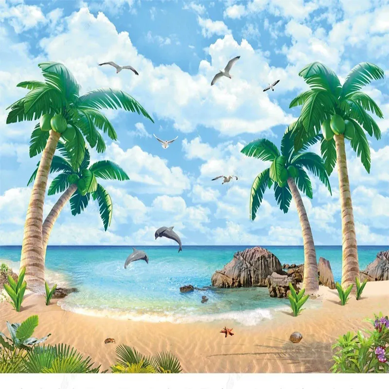 Настенные обои на заказ, самоклеящиеся водонепроницаемые современные фрески с рисунком кокосового дерева, морского берега, природный пейзаж, украшение для спальни, дома
