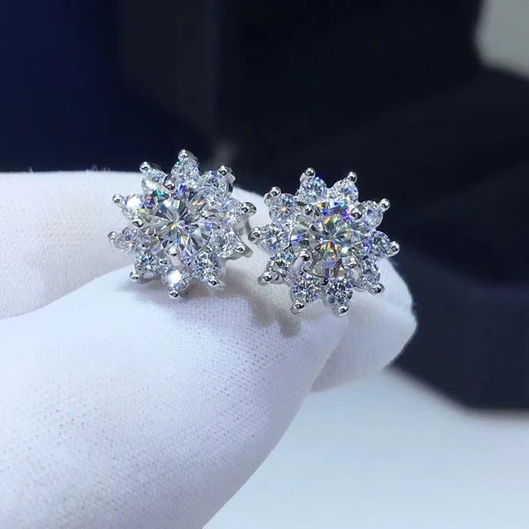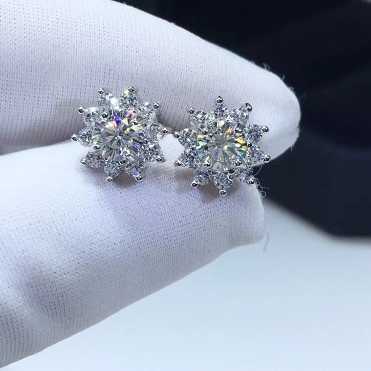 Женские серьги-гвоздики из серебра 925 пробы с муассанитом, 2 карата