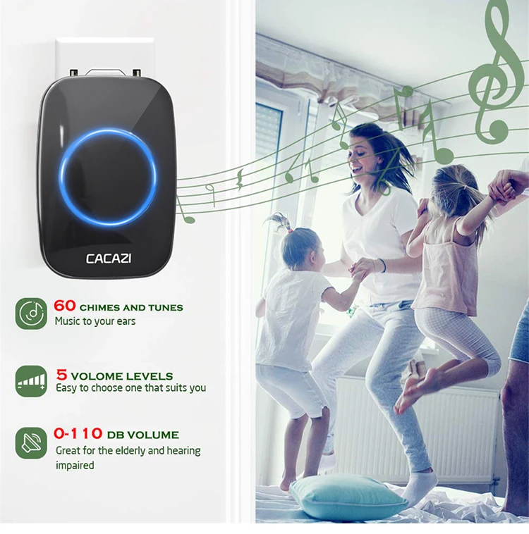 CACAZI 60 Chime 110DB беспроводной дверной звонок Водонепроницаемый...