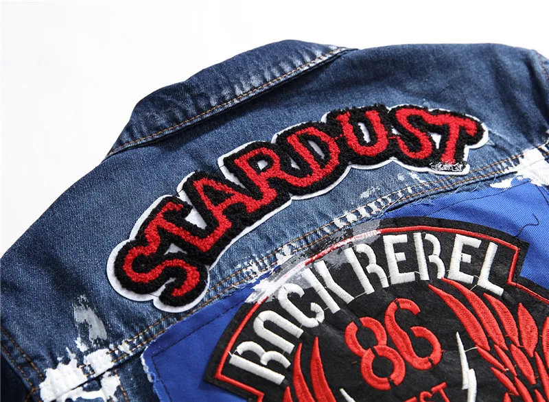 Мужская джинсовая куртка, с вышивкой, джинсы с изображением черепа шт.