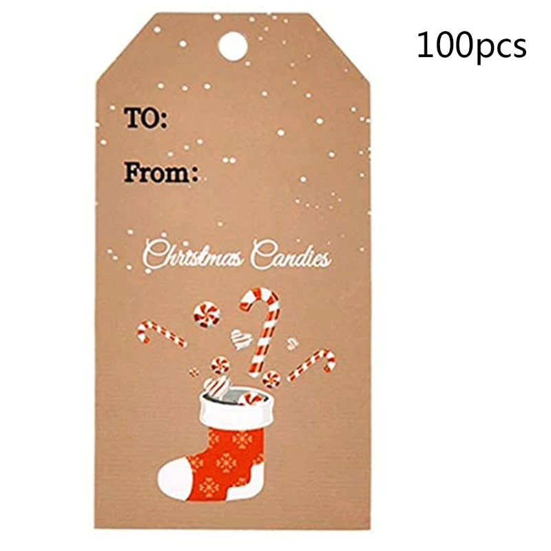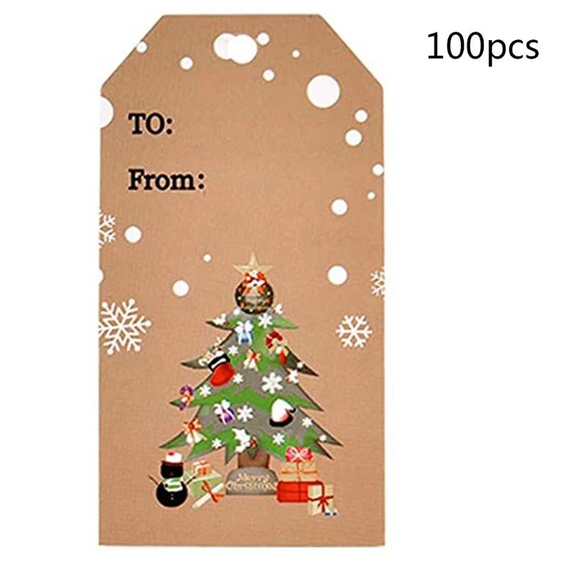 100 шт. рождественские ярлыки из крафт-бумаги с рисунком снеговика Санты дерева, подвесные ярлыки со шнурком для творчества, визитки