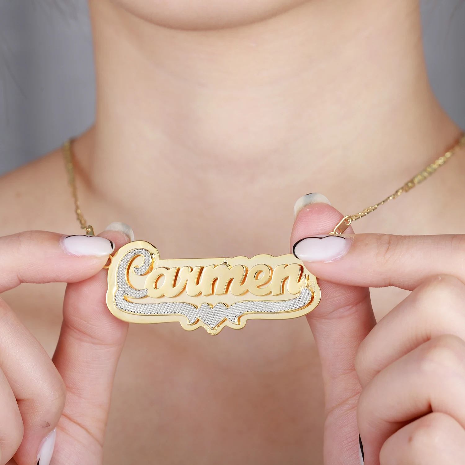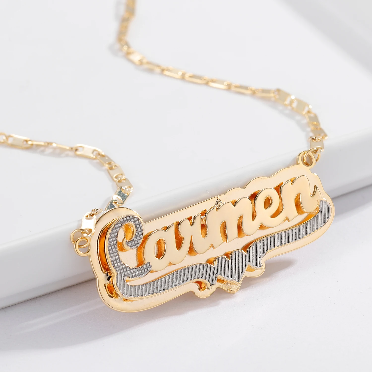 Двухцветное золотое ожерелье с двойной пластиной и 3D именем, 18 К
