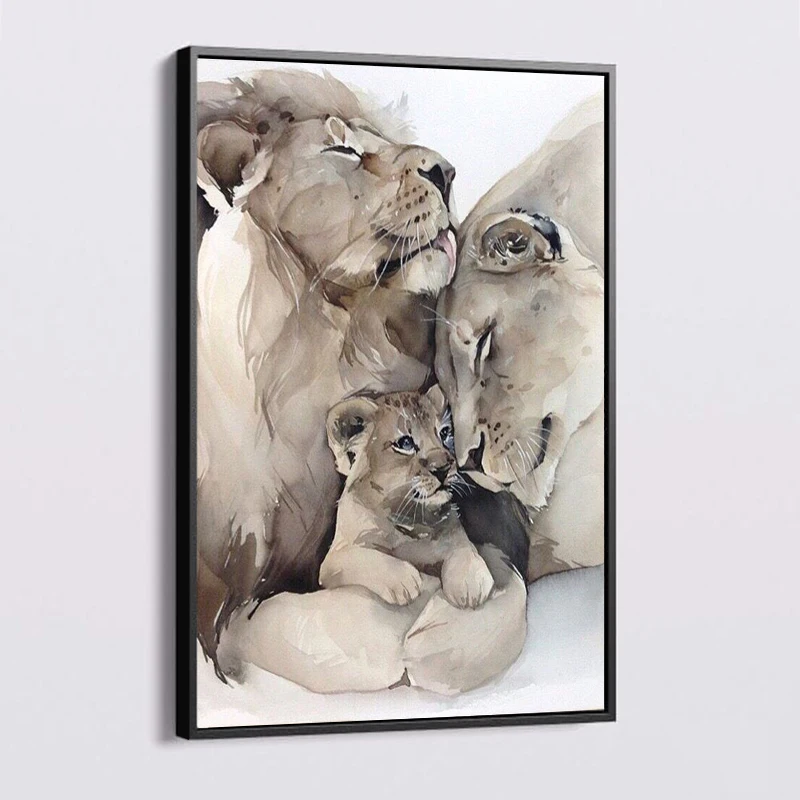 Простой современный холст с принтом семьи льва, плакат и принты, ху...